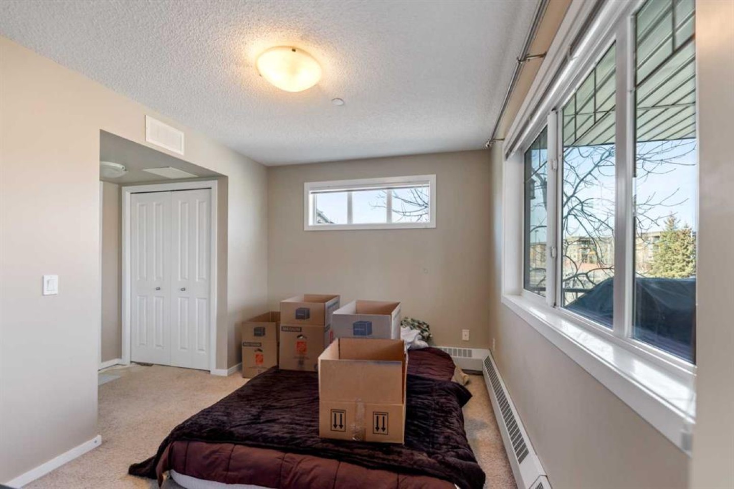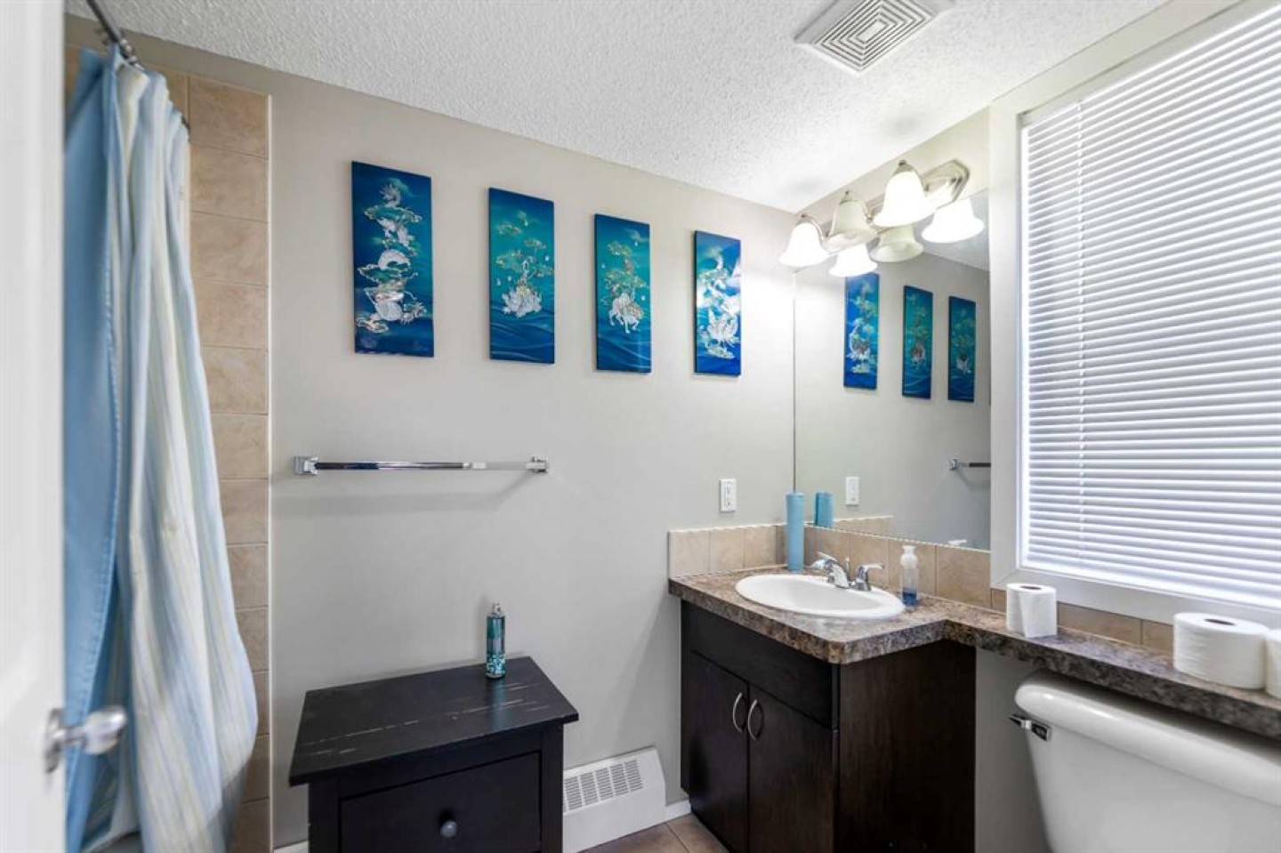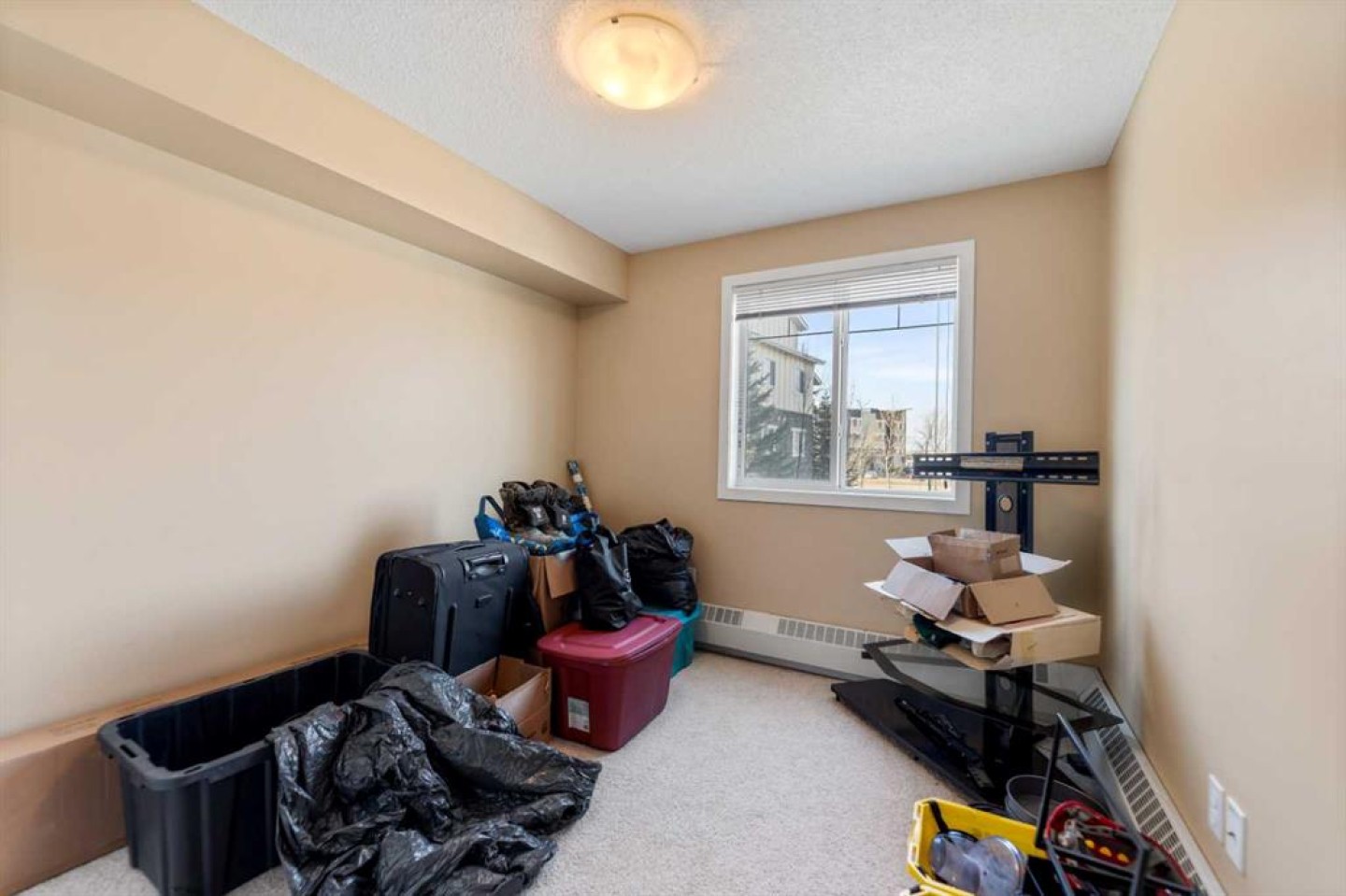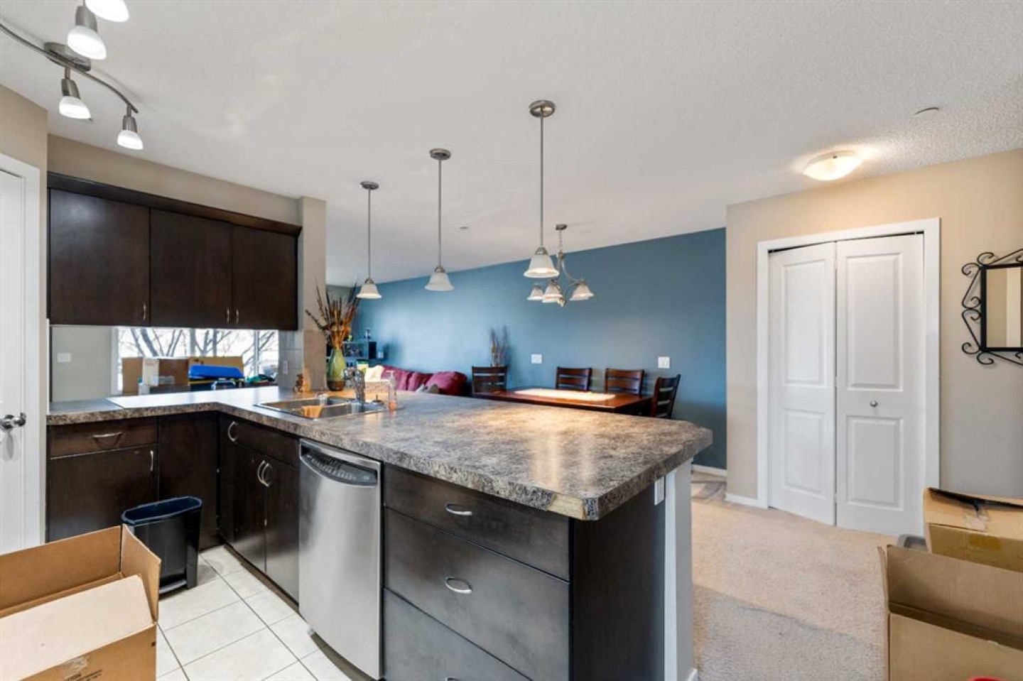 Welcome to this bright and well-designed apartment condo located in the desirable community of King’s Heights in Airdrie. This second-floor corner unit offers approximately 860 sq ft of comfortable living space, featuring 2 bedrooms and 2 full 4-piece bathrooms, including a private ensuite off the primary bedroom. The open-concept layout seamlessly connects the living room, dining area, and kitchen, creating an inviting space for everyday living and entertaining. The kitchen offers ample counter space, plenty of cabinetry, and a convenient sit-up breakfast bar. Large windows throughout the unit fill the home with natural light, while a patio door leads to the covered balcony, complete with a gas hookup for your BBQ. The thoughtfully designed floor plan places the bedrooms on opposite sides of the unit, providing added privacy, with the primary bedroom showcasing a walk-through closet. This unit also includes one titled parking stall and an assigned storage unit for added convenience. Ideally located close to schools, parks, playgrounds, shopping, restaurants, and with quick access to Highway 2 for easy north or south commuting, this property is perfect for first-time buyers, downsizers, or as a smart addition to your rental portfolio.