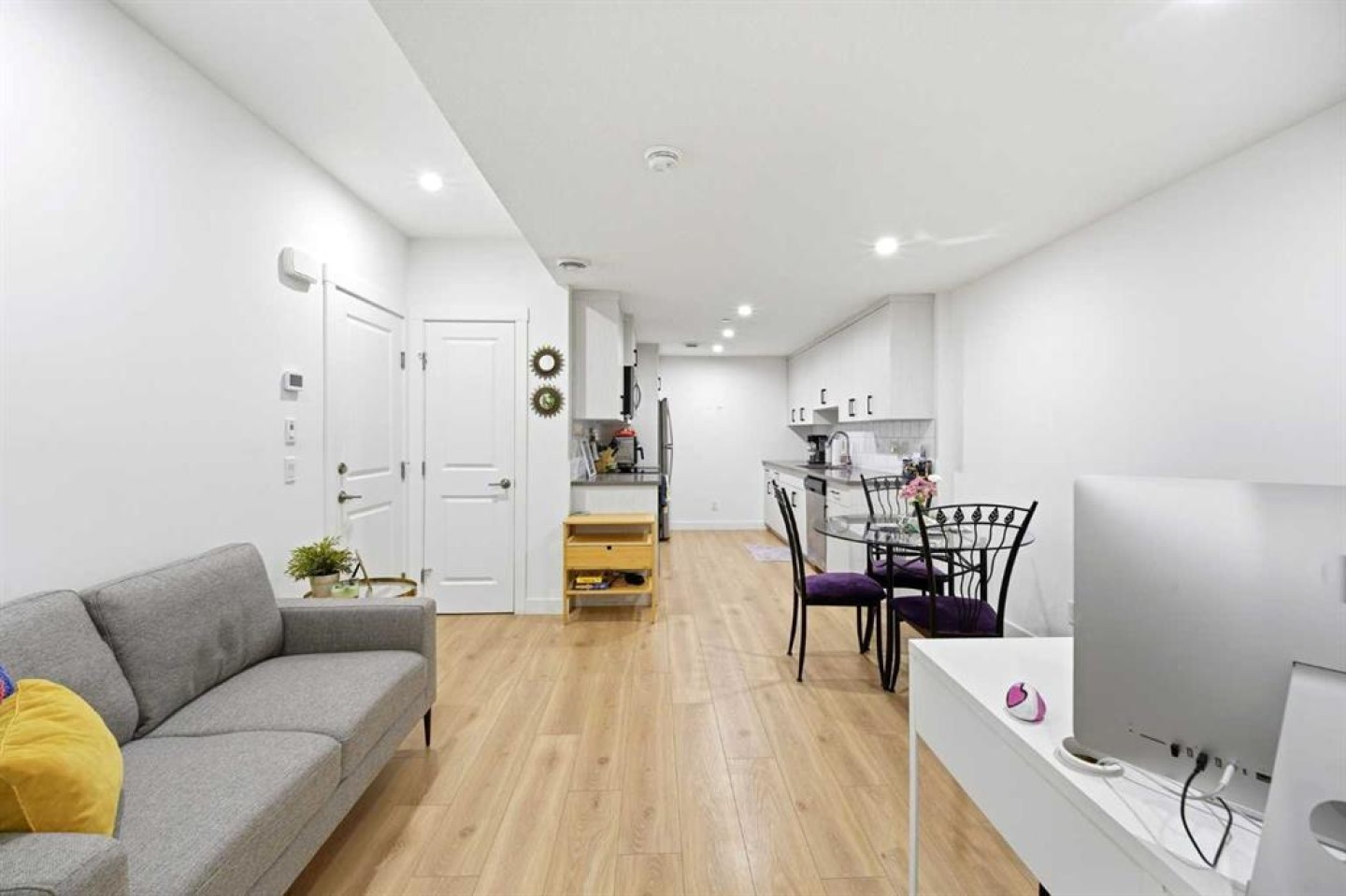 Welcome to this recently built, fully finished semi-detached home with a legal basement suite and double detached garage in front of park in the desirable community of Livingston. Offering over 2,200 sq. ft. of developed living space, this stylish and well-maintained property is ideal for families and investors alike. The main floor features 9-ft ceilings and an open-concept design highlighted by a bright white gourmet kitchen complete with built-in oven and microwave, chimney hood fan, stainless steel appliances, central island, crown-molded cabinetry, tile backsplash, spacious pantry, and a convenient 2-piece bath. Large windows and patio doors flood the living and dining areas with natural light. Upstairs, you’ll find a generous primary bedroom with walk-in closet and 4-piece ensuite featuring a double vanity and standing shower, along with two additional bedrooms, a bonus room, full main bathroom, and upper-level laundry for added convenience. The fully finished legal basement provides excellent income potential, offering a separate kitchen, bedroom, full bathroom, separate laundry, and a versatile living space. An exceptional opportunity in a growing community — book your private showing today!