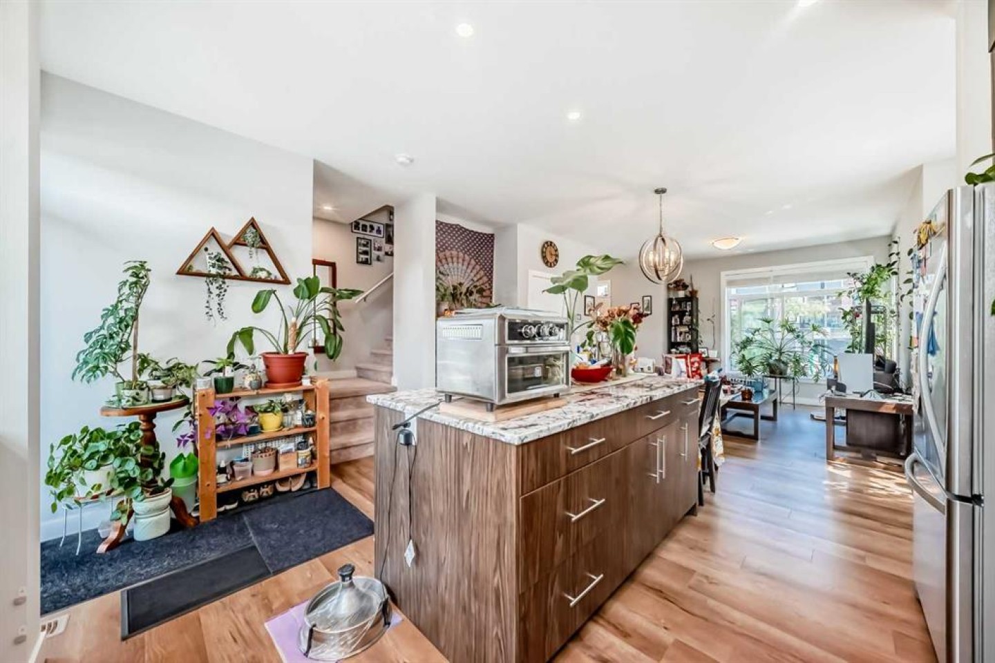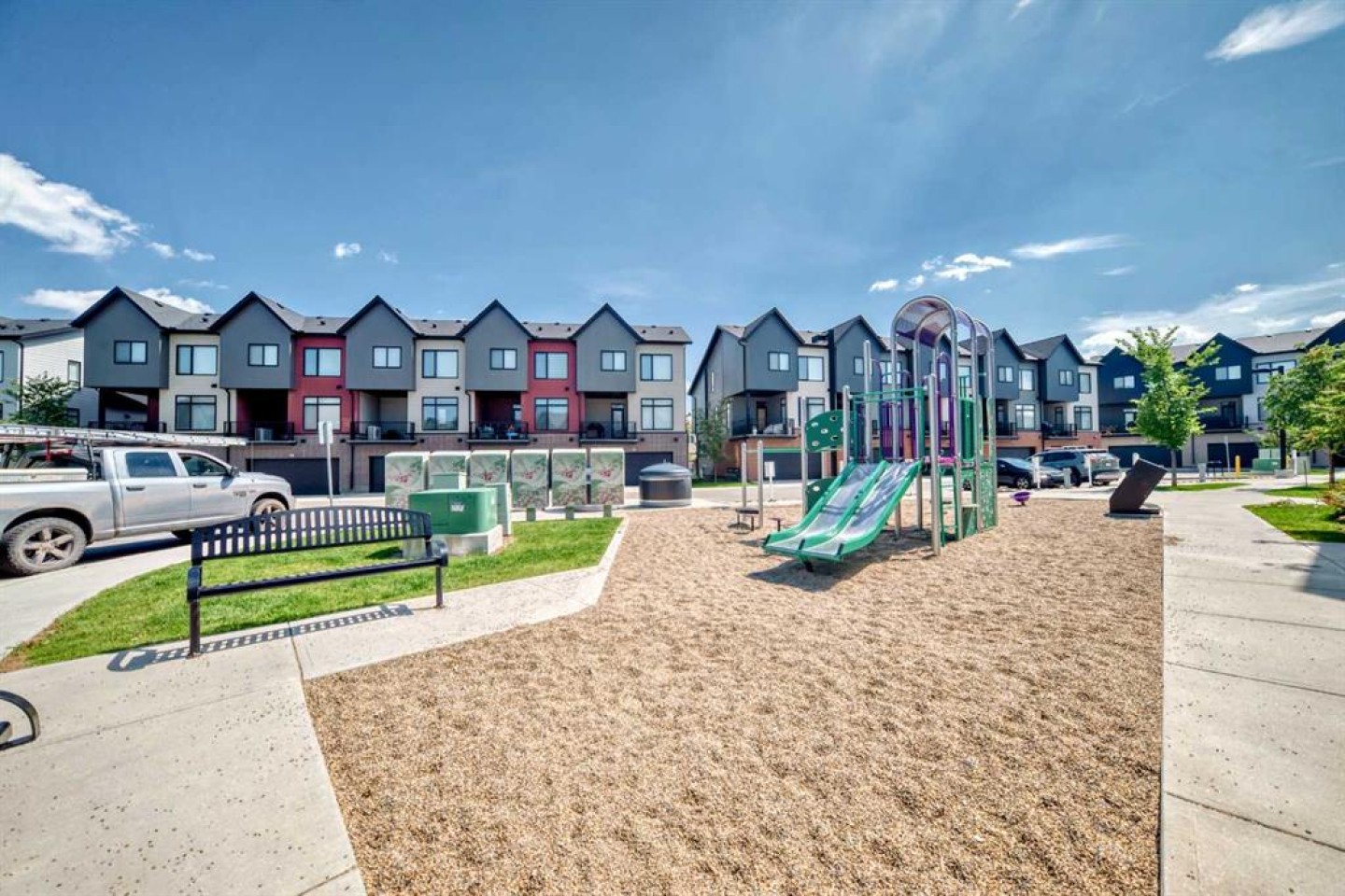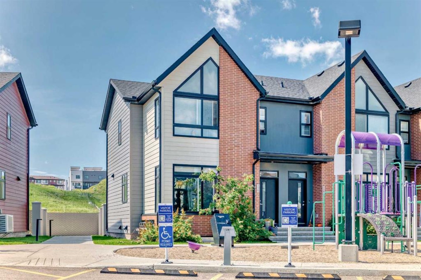 Welcome home to this bright and stylish end unit townhome in the heart of Sage Hill. With low condo fees, a playground just steps from your door. This home offers both comfort and convenience. As an end unit, you will enjoy additional side windows that fill the space with natural light, making it an absolute dream for plant lovers. Offering 1,269 square feet, this 3-bedroom, 2.5-bathroom home showcases a clean Scandinavian aesthetic with contemporary colours, quartz countertops throughout, and stainless steel Whirlpool appliances in a modern kitchen. The kitchen features full-height cabinetry, a spacious island, and a striking 4' x 16' subway tile backsplash. The open concept design flows easily to a sunny, partially fenced back patio that is perfect for relaxing or entertaining. Upstairs, the vaulted primary suite boasts beautiful windows, a large closet, and a private ensuite. Two additional bedrooms, a full main bathroom, and convenient second floor laundry complete the upper level. Built with quality and efficiency in mind, this Certified Built Green home includes a Quietwall system to minimize sound transfer, oversized triple-glazed low-E windows, a 96% high efficiency furnace, and tankless hot water. The basement is undeveloped with 571 square feet and two large windows, providing great potential for future development. A new Calgary Transit terminal with a park-and-ride facility is planned for Sage Hill as part of the Symons Valley Centre development. This convenient location will provide quick access to some of NW Calgary’s most popular amenities, including Creekside, as well as nearby retail, shops, and services within the community. If you are looking for a bright, modern, and low maintenance home in a fantastic location, this one is ready to welcome you.