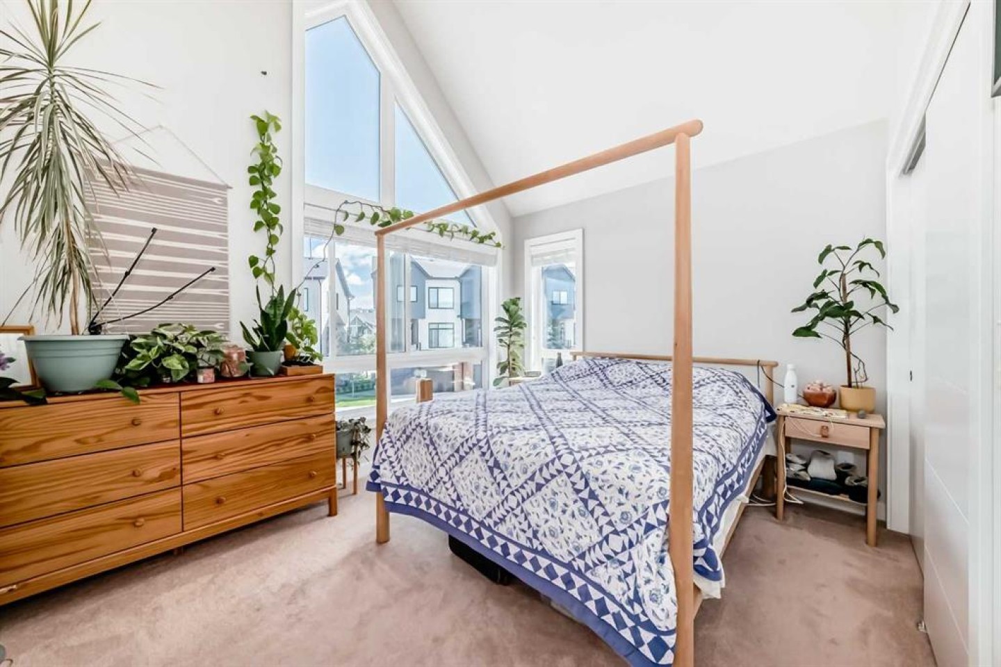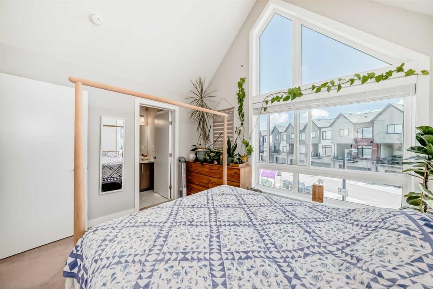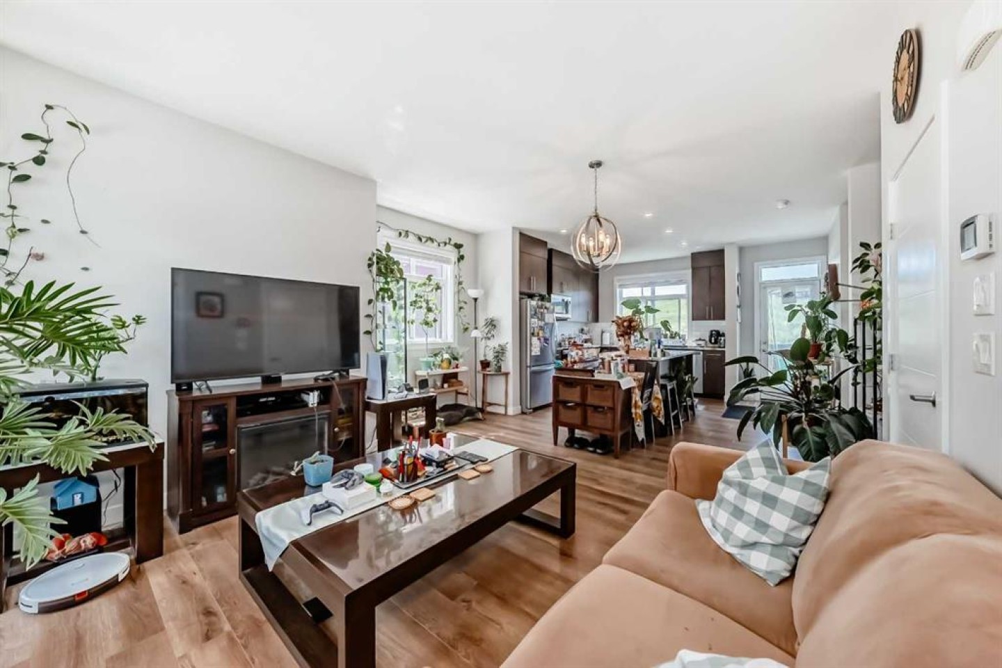 Welcome home to this bright and stylish end unit townhome in the heart of Sage Hill. With low condo fees, a playground just steps from your door. This home offers both comfort and convenience. As an end unit, you will enjoy additional side windows that fill the space with natural light, making it an absolute dream for plant lovers. Offering 1,269 square feet, this 3-bedroom, 2.5-bathroom home showcases a clean Scandinavian aesthetic with contemporary colours, quartz countertops throughout, and stainless steel Whirlpool appliances in a modern kitchen. The kitchen features full-height cabinetry, a spacious island, and a striking 4' x 16' subway tile backsplash. The open concept design flows easily to a sunny, partially fenced back patio that is perfect for relaxing or entertaining. Upstairs, the vaulted primary suite boasts beautiful windows, a large closet, and a private ensuite. Two additional bedrooms, a full main bathroom, and convenient second floor laundry complete the upper level. Built with quality and efficiency in mind, this Certified Built Green home includes a Quietwall system to minimize sound transfer, oversized triple-glazed low-E windows, a 96% high efficiency furnace, and tankless hot water. The basement is undeveloped with 571 square feet and two large windows, providing great potential for future development. A new Calgary Transit terminal with a park-and-ride facility is planned for Sage Hill as part of the Symons Valley Centre development. This convenient location will provide quick access to some of NW Calgary’s most popular amenities, including Creekside, as well as nearby retail, shops, and services within the community. If you are looking for a bright, modern, and low maintenance home in a fantastic location, this one is ready to welcome you.