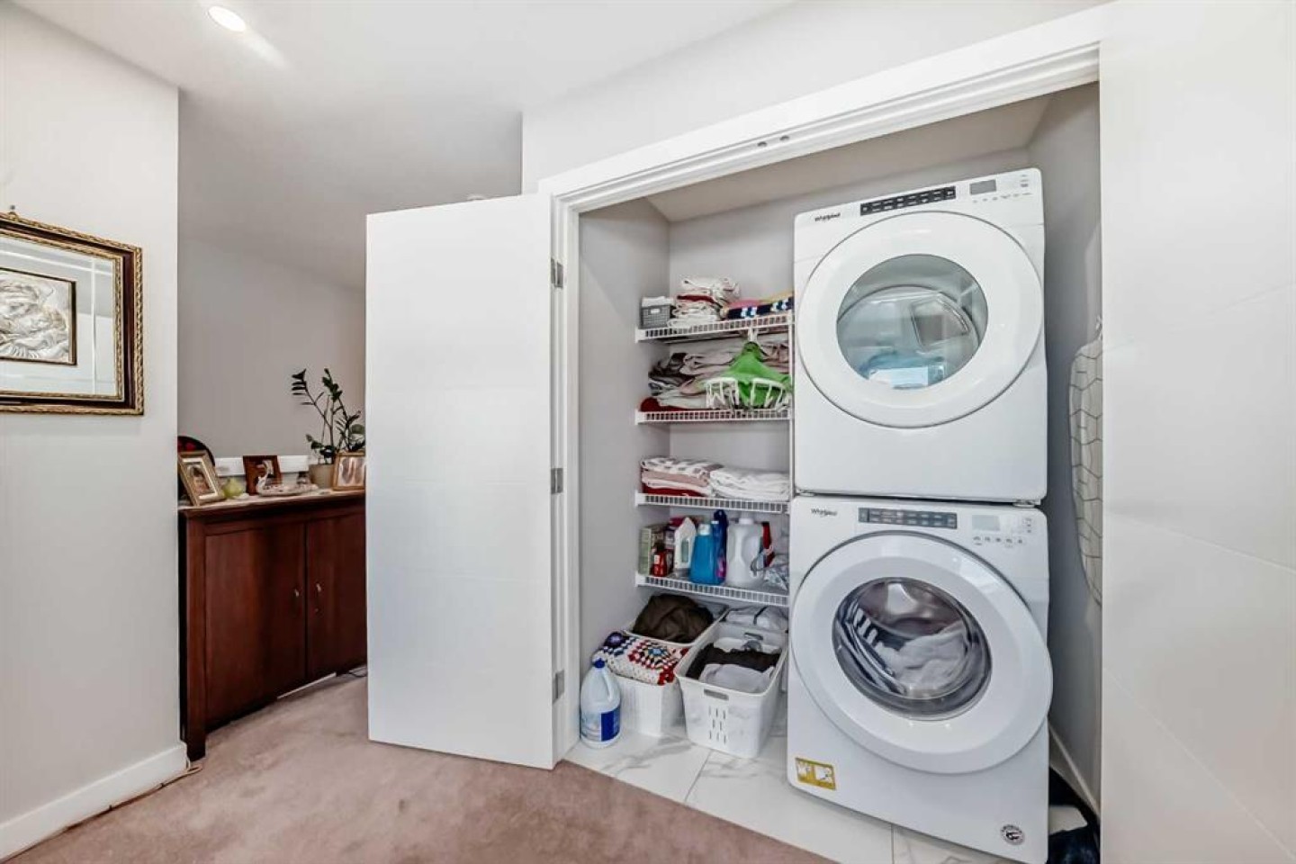 Blinds & The closet doors for the main entrance are stored in the basement and will remain with the sale of the home