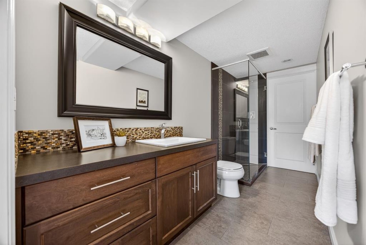 Welcome to this beautifully maintained home, perfectly positioned on a quiet street in the highly sought-after lake community of Mahogany in Southeast Calgary. Just a 5-minute walk to the lake, parks, shopping, schools, and endless walking paths, this property offers year-round lake access and an unbeatable lifestyle. Enjoy exceptional convenience with quick access to Deerfoot Trail and Stoney Trail, making commuting anywhere in or out of the city effortless. You’re also just minutes from South Health Campus. Step inside to a spacious front foyer, leading into a bright, open-concept main floor finished with rich hardwood throughout. The thoughtfully designed layout allows the whole family to gather comfortably. The kitchen features warm wood cabinetry, granite countertops, stainless steel appliances, a pantry, and a stunning three-sided fireplace that creates a beautiful focal point between the dining and living areas. The inviting living room offers the perfect space to relax on cozy winter evenings and flows seamlessly for entertaining or hosting holiday dinners. A convenient 2-piece powder room and mudroom off the garage complete the main level. The garage itself boasts high ceilings, offering excellent additional storage space. Upstairs, you’ll find a generous bonus room—ideal for a play area or media space—along with two well-sized bedrooms and a full 4-piece bathroom. The spacious primary retreat features a luxurious 5-piece ensuite with a tiled stand-up shower, soaker tub, dual sinks, and a large walk-in closet. The fully developed basement offers an illegal suite setup complete with a full kitchen, separate laundry, recreation room, bedroom, and full bathroom—providing flexible living options. Outside, the backyard is thoughtfully designed with privacy in mind, creating a wonderful space to relax and unwind. Lovingly cared for and move-in ready, this exceptional home offers space, comfort, and lifestyle in one of Calgary’s premier lake communities. Don’t miss your opportunity to make it yours!