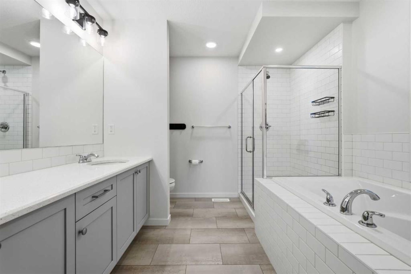 **OPEN HOUSE: Sunday, March 1st from 2-4pm** Welcome to life at a higher level in Alpine Park. Located in one of Calgary’s most elevated new communities with quick access to Stoney Trail, this rare THREE-STOREY HOME offers over 2700SF OF FINISHED LIVING SPACE, including a FULLY DEVELOPED BASEMENT and a PRIVATE ROOFTOP PATIO. The main floor features LUXURY VINYL PLANK flooring, STONE COUNTERTOPS, upgraded appliances including a GAS RANGE, and a seamless layout designed for both daily living and entertaining. Upstairs, the spacious primary retreat includes a FIVE-PIECE ENSUITE with DOUBLE VANITIES, a glass shower, and a separate SOAKER TUB. Two additional bedrooms, a full bathroom and thoughtfully placed laundry room complete the second level. The bright and airy THIRD-STOREY BONUS ROOM opens onto a PRIVATE ROOFTOP PATIO - a versatile space perfect for summer evenings, morning coffee, or entertaining above it all. The FULLY DEVELOPED BASEMENT adds a fourth bedroom, full bathroom, and flexible living space ideal for guests, a home office, or a media area. Outside, enjoy a fully landscaped and FENCED YARD with dual gates for convenience, concrete patio, and DOUBLE DETACHED GARAGE - a clean, low maintenance set-up that's ready to enjoy from day one. Additional upgrades like GEMSTONE ARCHITECTURAL LIGHTING, CENTRAL AIR CONDITIONING, and a RADON MITIGATION SYSTEM offer both comfort and peace of mind. This is not just another new-build, it’s a thoughtfully upgraded, move-in ready home with rare vertical living in one of Calgary’s most exciting new communities.