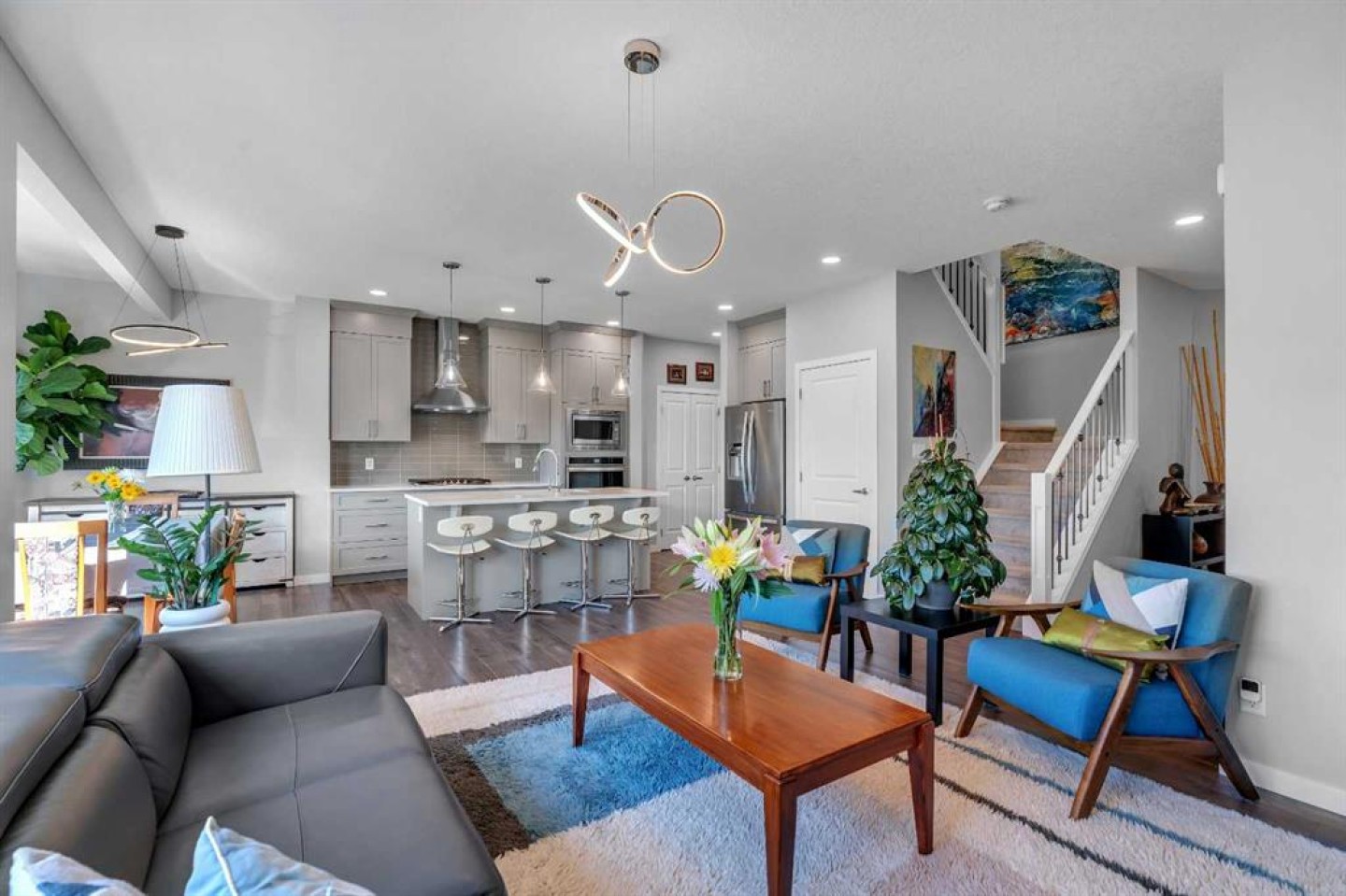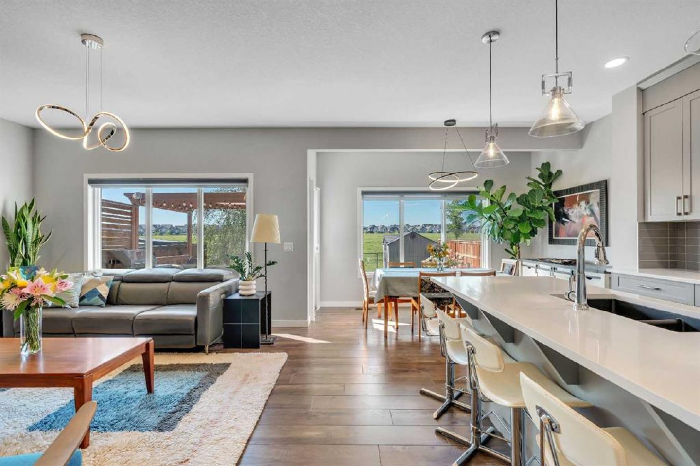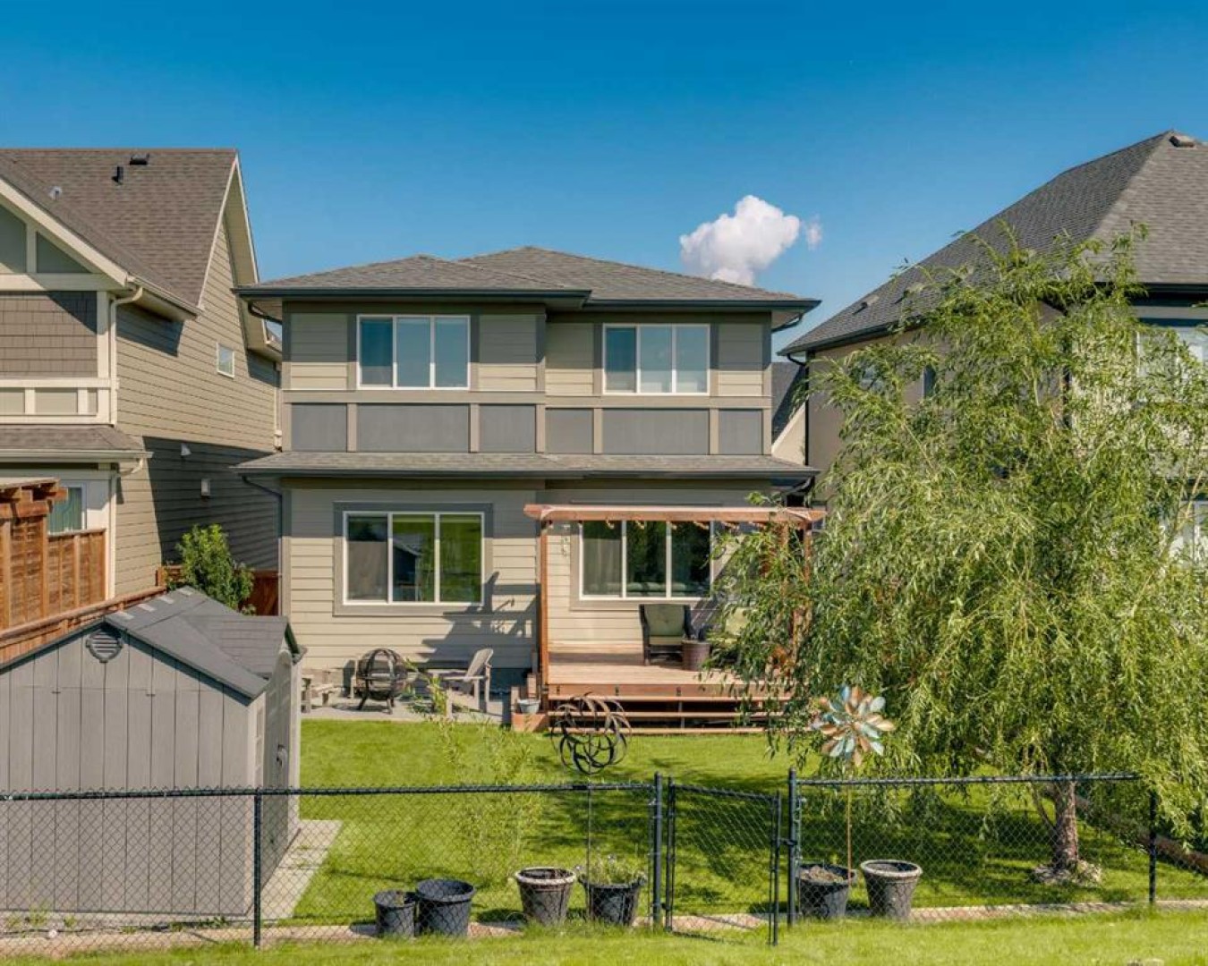 Welcome to 29 Masters Terrace SE – a beautifully designed two-story family home located in the highly sought-after, peaceful lake community of Mahogany. From the moment you step inside, you’re greeted by a grand front foyer and an impressive sense of space with 9 ft ceilings and luxury vinyl plank flooring throughout the main level. The open-concept design seamlessly connects the living, dining, and kitchen areas, creating the perfect flow for both family living and entertaining. At the heart of the home is the chef’s kitchen, showcasing full-height neutral cabinetry, quartz countertops, a large island, built-in wall oven, gas stove, and premium stainless-steel appliances. The extended dining nook opens directly onto your pressure treated deck, where you can sip your morning coffee or host summer BBQs while overlooking your beautifully landscaped, south-facing backyard. With mature trees, thoughtful design, and direct access to a large sports field and green space, this outdoor oasis is both private and functional. The upper level is designed with comfort and versatility in mind. A huge bonus room makes the ideal family retreat for movie nights, or a kids’ play area. A spacious laundry room with extra storage adds convenience. Two generously sized bedrooms provide plenty of space for the family, while the luxurious primary suite offers a walk-in closet and a spa-inspired ensuite featuring a quartz double vanity, soaker tub, and a separate glass shower. Additional highlights include: pleasant front curb appeal on a quiet street, mature landscaping front and back, functional and spacious main floor layout and water softener system included. This stunning Mahogany home combines elegance, functionality, and location. With south-backing green space and a thoughtfully designed interior, it’s a perfect fit for growing families who want both beauty and practicality.