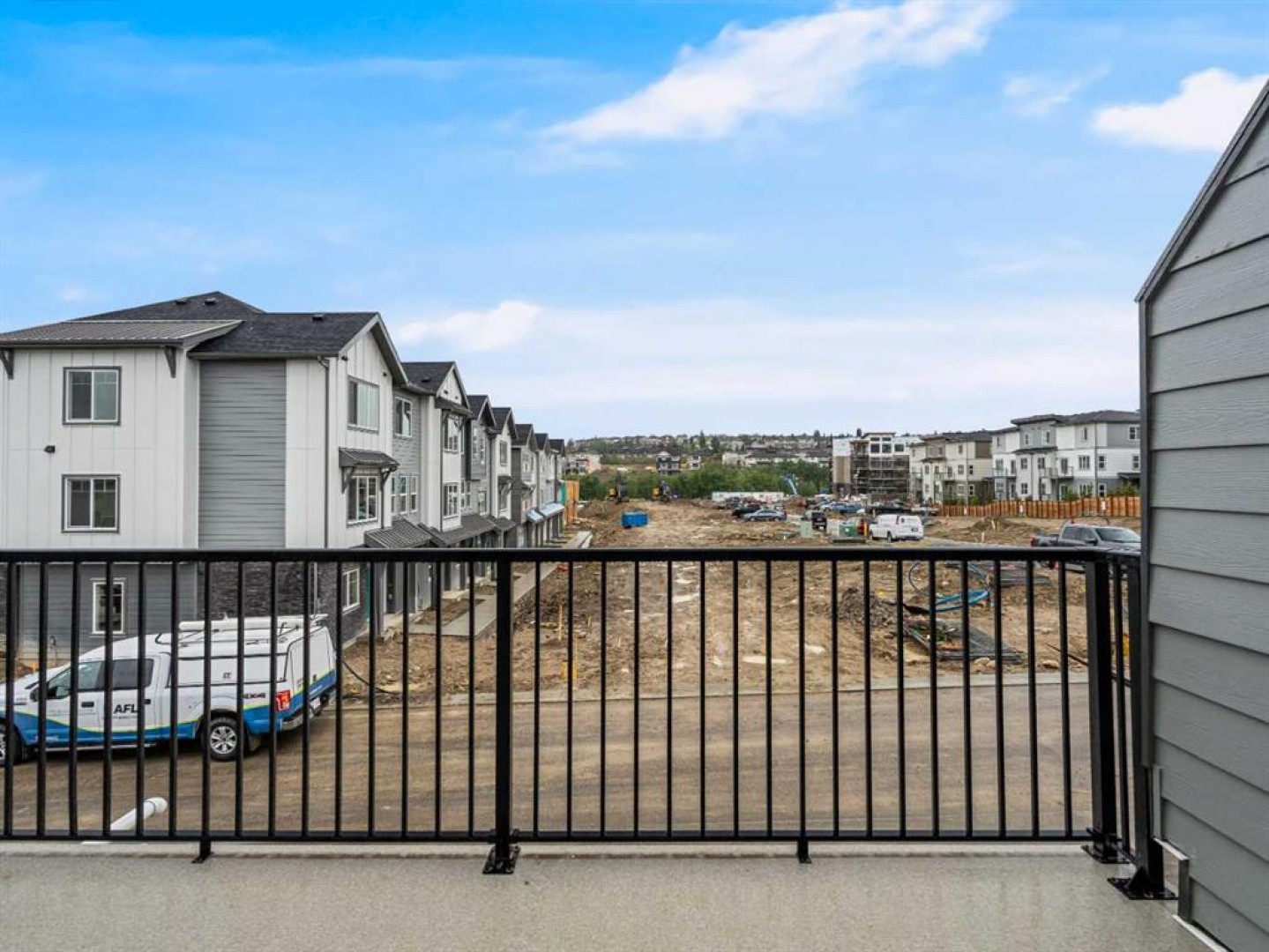 **Open House on Saturday : 1 pm-4 pm** Explore a series of stylish heritage-inspired row houses located near the center of our scenic Environment Reserve Park! This Heritage model A combines comfort and functionality, making it perfect for families and professionals. With 2 bedrooms, 2.5 bathrooms, and a flexible main-floor den, this expansive home is tailored for contemporary living. Upon entering, you will discover a bright ground-floor den or home office that includes a large window, a closet, and a handy powder room. Enjoy a beautifully landscaped front yard, a single attached garage, and additional parking in the driveway. The open-concept main floor features 9' ceilings and is bathed in natural light, creating a cozy and welcoming atmosphere for daily living or entertaining guests. The modern kitchen is equipped with quartz countertops, a breakfast bar, high-end stainless steel appliances, and a chimney-style range hood. Sliding doors lead to a full-sized balcony — perfect for unwinding or dining outside. On the upper level, there are two roomy bedrooms, including a primary suite that has a double access closet and a private ensuite with a stand-up shower and a sliding glass door. A second full 3-piece bathroom is available for the additional bedroom, which can also serve as a home office. The upper floor further includes a washer and dryer conveniently situated, a linen closet, and ample storage options throughout. This home is located in vibrant Springbank Hill and offers easy access to Aspen Landing, Rundle College, Griffith Woods, Ambrose University, restaurants, and senior care facilities. **The price includes GST. **All pictures are from show home #2225 81St SW.