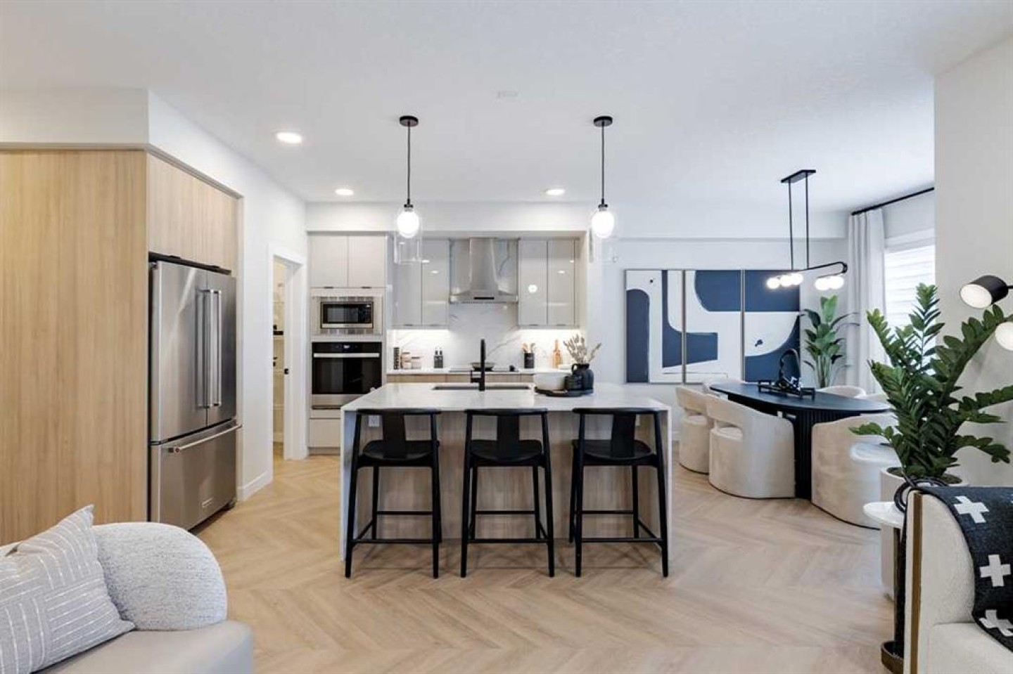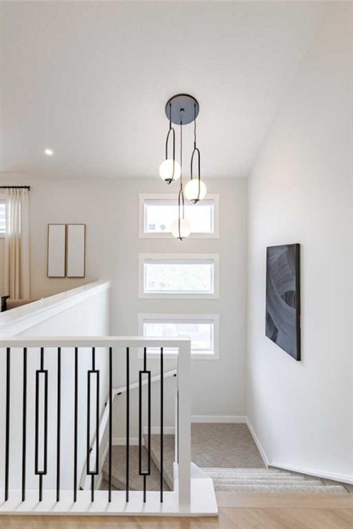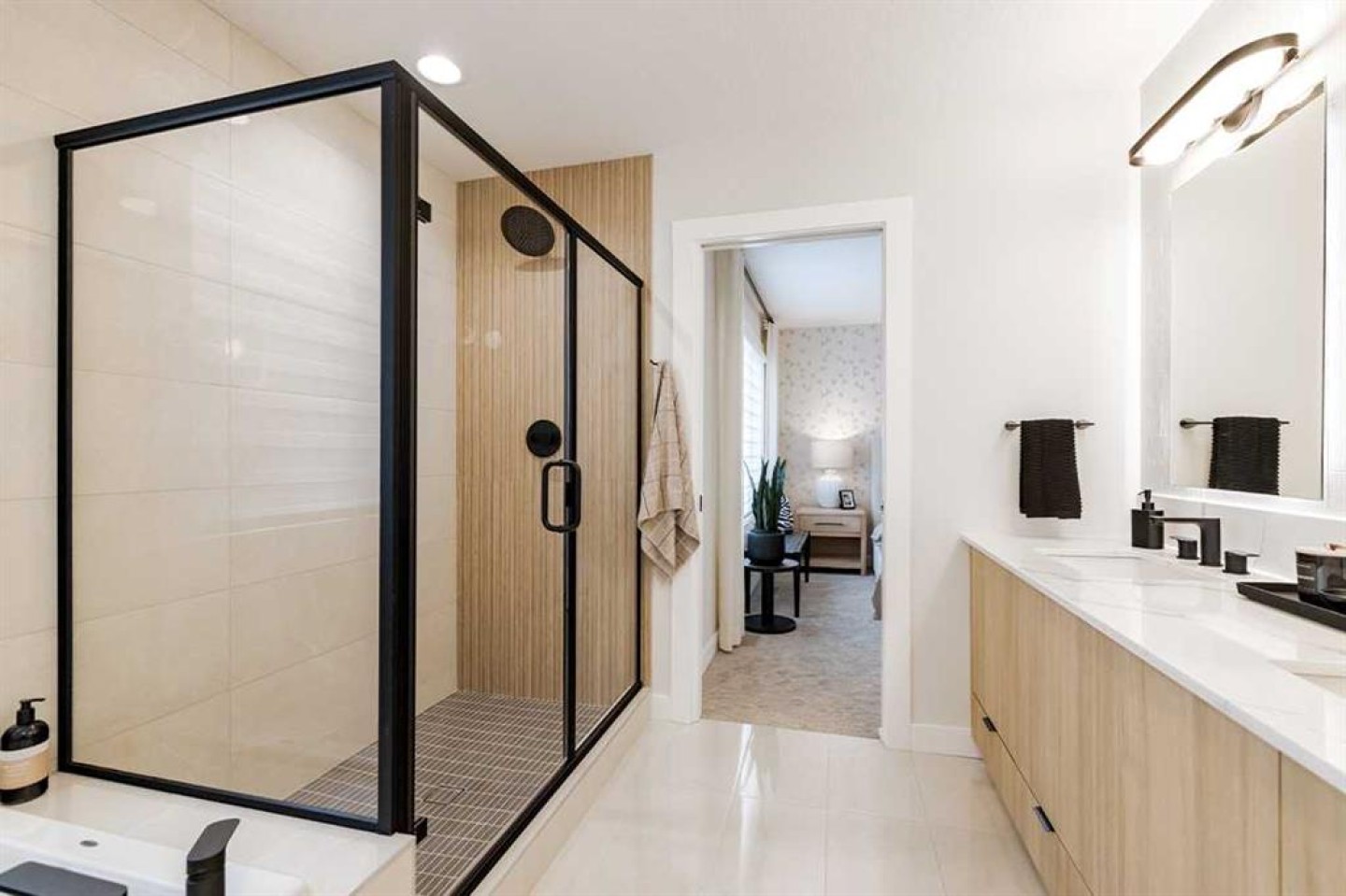 Welcome to the Katalina by Shane Homes, a pre construction front-drive home with a double attached garage located in the community of Rose Ranch. The main floor features a full bedroom and full bathroom with shower, ideal for guests. The open-concept layout includes a living room with electric fireplace, dining nook, and a kitchen with island seating and a walk-in pantry. Upstairs offers three bedrooms, including the primary bedroom with dual vanity ensuite, soaker tub, separate shower, and walk-in closet. All upstairs bedrooms include walk-in closets, along with a full laundry room and an additional full bathroom. The undeveloped basement is ready for potential future development and includes rough-ins. This home can be customized to suit buyer needs. Photos are illustrative and for representative purposes only.