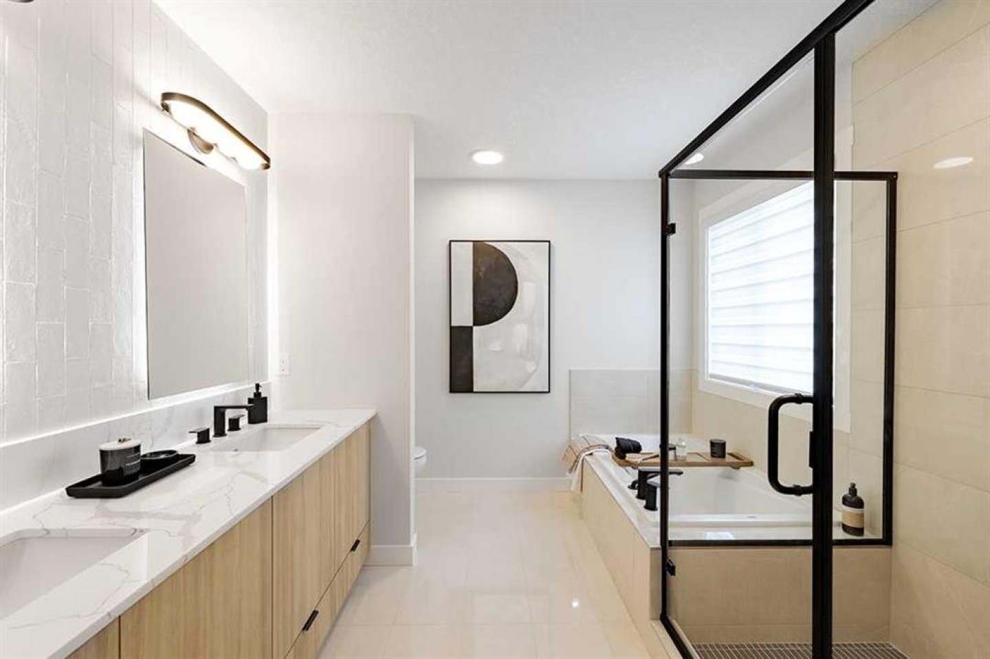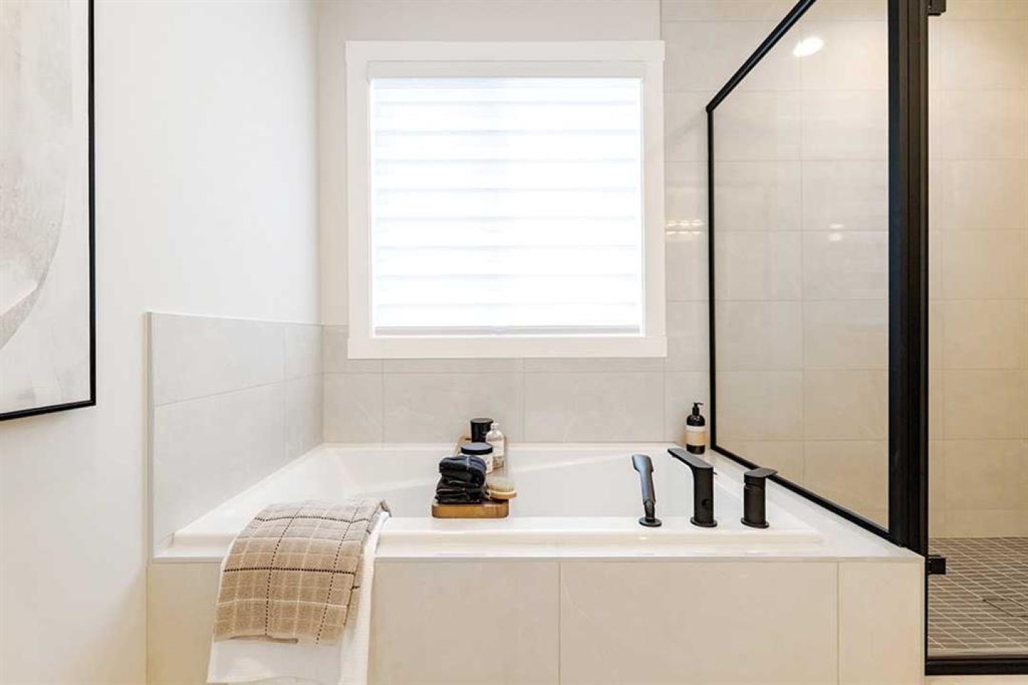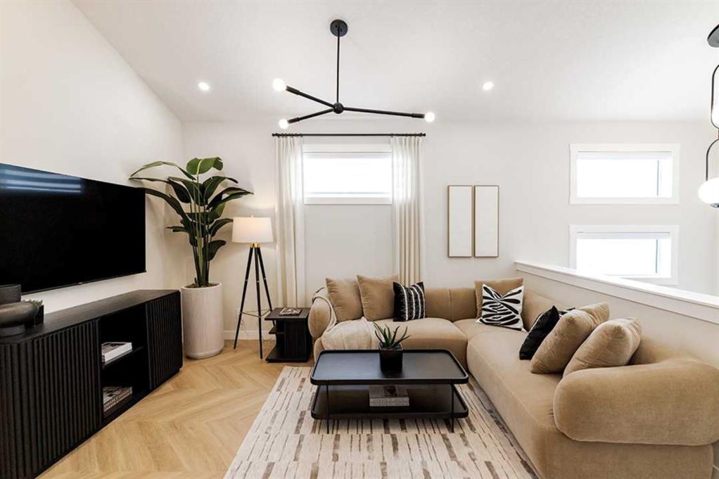 Welcome to the Katalina by Shane Homes, a pre construction front-drive home with a double attached garage located in the community of Rose Ranch. The main floor features a full bedroom and full bathroom with shower, ideal for guests. The open-concept layout includes a living room with electric fireplace, dining nook, and a kitchen with island seating and a walk-in pantry. Upstairs offers three bedrooms, including the primary bedroom with dual vanity ensuite, soaker tub, separate shower, and walk-in closet. All upstairs bedrooms include walk-in closets, along with a full laundry room and an additional full bathroom. The undeveloped basement is ready for potential future development and includes rough-ins. This home can be customized to suit buyer needs. Photos are illustrative and for representative purposes only.
