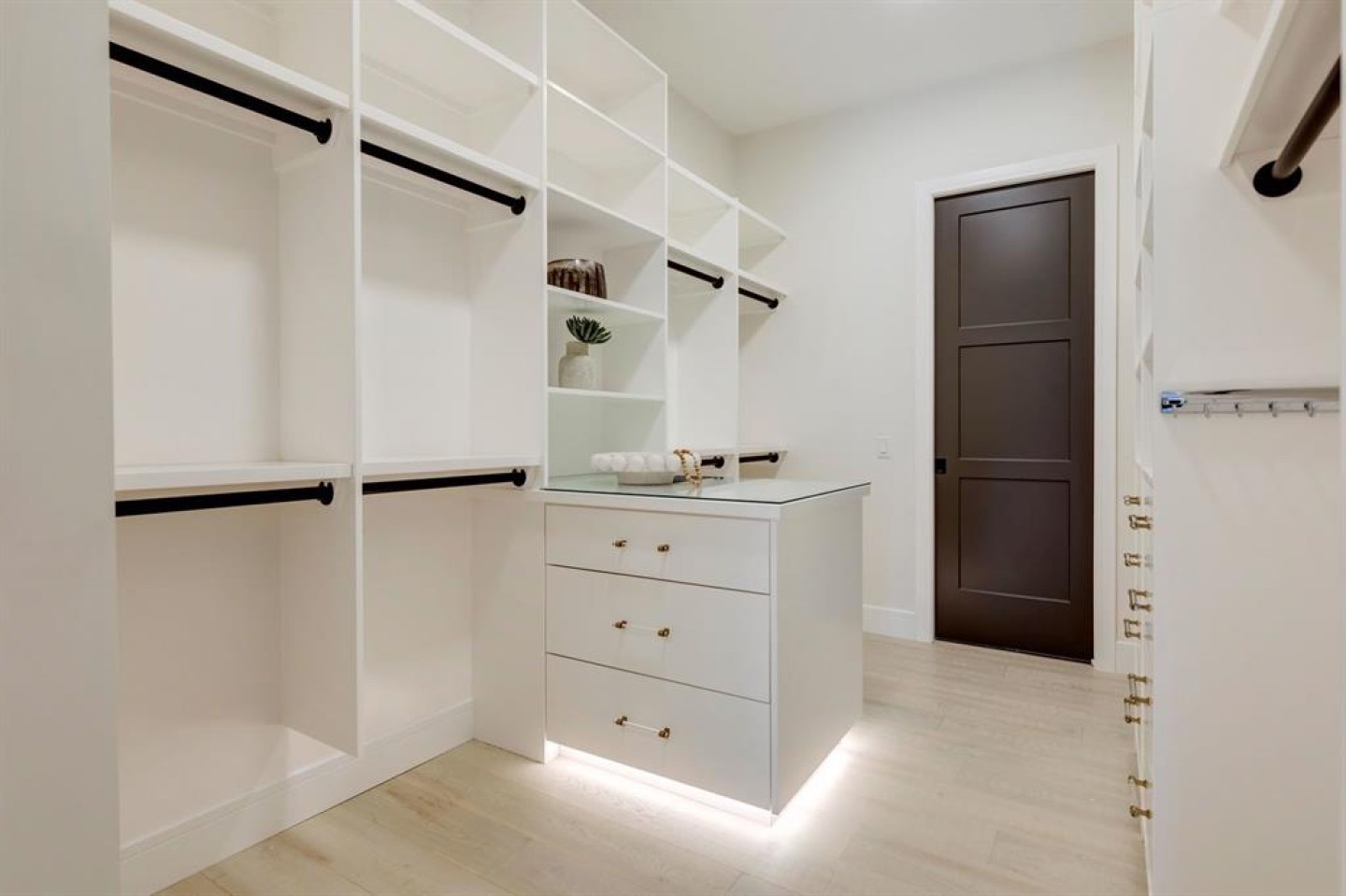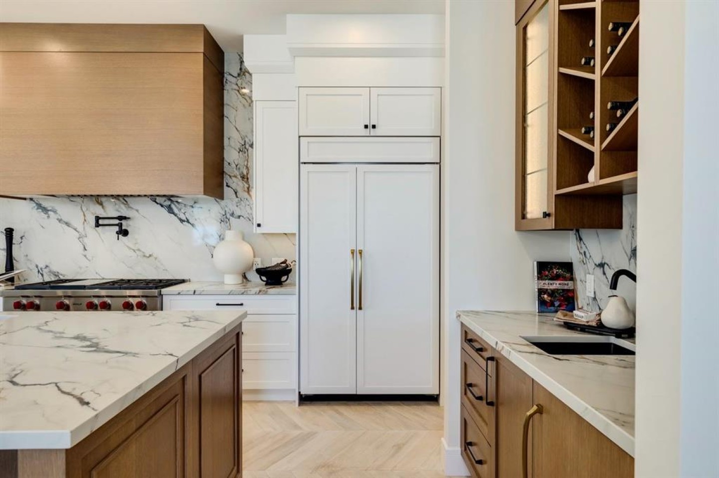 Discover exceptional living in the heart of Calgary’s Inner City with this exquisitely crafted show home in the vibrant and highly sought-after community of Currie. Meticulously built and designed to impress, this true bungalow villa is a statement in refined elegance, boasting premium upgrades, custom millwork, and a layout that seamlessly blends timeless sophistication with everyday functionality. From the moment you step into the spacious foyer, you're welcomed by soaring ceilings and engineered white oak herringbone hardwood flooring, setting the tone for the superior level of finish throughout. A private front den with views of the charming front porch serves as the perfect home office or library, offering separation from the main living space. The heart of the home is an expansive open concept living area that pairs a classic design aesthetic with modern luxuries. The formal dining area is ideal for entertaining, while the masterfully curated kitchen is the "chef's kiss" featuring custom cabinetry, quartz countertops, and an elite panelled Sub-Zero refrigerator, Wolf appliance package, including a 6-burner gas range with griddle, built-in wall oven and microwave, and Asko dishwasher. An oversized island invites gatherings, and the adjacent open pantry keeps essentials close at hand yet neatly tucked away. The living room is adorned in natural light and anchored by a striking matte black feature fireplace wall, creating a dramatic focal point. Large sliding glass doors extend the living area outdoors to a pergola covered deck, offering a seamless indoor/outdoor lifestyle experience. Retreat to the luxurious primary suite with vaulted ceilings, expansive window, and a custom designed dressing room leading to a lavish 6pc ensuite. Indulge in the deep soaker tub, his/her sinks, and a show stopping walk-in shower with dual rainfall heads and a built-in bench, all appointed with exquisite tile and designer fixtures. Thoughtfully designed for convenience, the main floor also features a spacious laundry/mudroom with access to the heated double garage with aggregate flooring. Downstairs, you’ll find in-floor boiler heating, high ceilings, and an entertainer’s dream layout. A generous games room with a full wet bar flows into a cozy media room, perfect for movie nights or game days. Two large bedrooms, one with its own ensuite, are separated by a dedicated home gym space and guest bathroom. Homeowners will love the large pergola deck that steps down to their own backyard where gardening enthusiasts can create an outdoor colourful oasis or a relaxation retreat. Located in Currie, a master-planned community rich in history and brimming with modern lifestyle amenities, from scenic parks and pathways to dog parks, cafés, restaurants, and top- tier schools. Just minutes from Marda Loop and downtown Calgary. Personalize your dream villa today by meeting with our design experts and customizing the finishing touches to match your unique style and vision