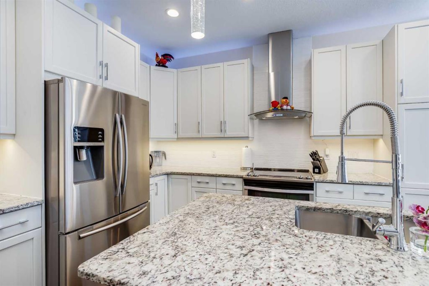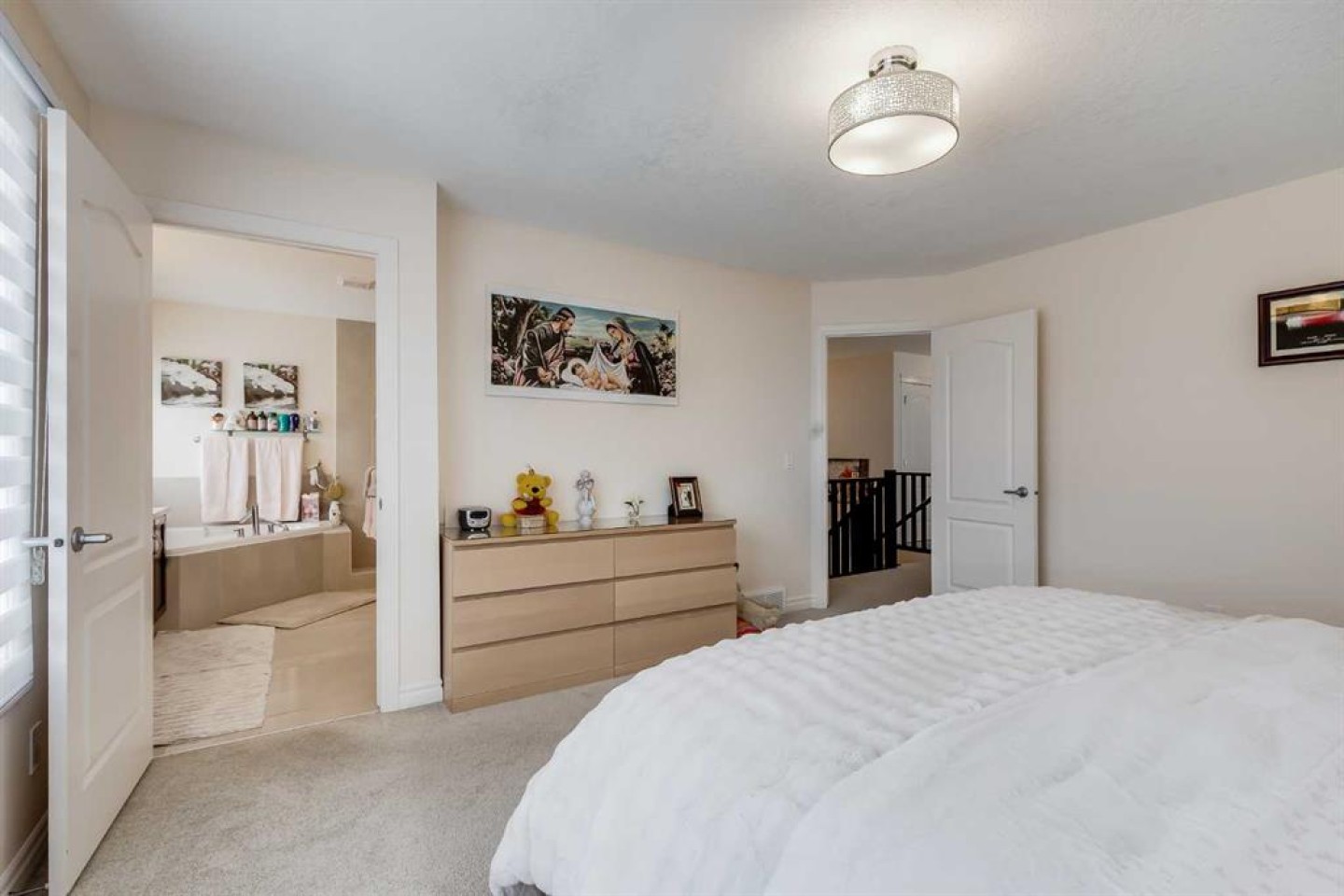 Beautiful 2 storey house with double attached garage. Perfect family home. 4 bedrooms in total, 3 & 1/2 bathrooms. Extremely clean and very well maintained. Main floor features gourmet kitchen with upgraded appliances and granite counter tops, spacious living room with stone fireplace, good size dining room with patio door leading to a large deck on sunny west backyard. Big master bedroom upstairs with elegant ensuite bathroom, 2 good size kids room, main bathroom, bonus room and upstairs laundry room. Professionally finished basement with large family room, wet bar, additional bedroom and full bathroom. A lot of upgrades in this lovely home like big windows for brightness, 9 foot ceiling, new roof (2025), newer (2022) hot water tank, new toilets, new smoke detectors, new exterior paint, newly painted deck. Big pie shaped backyard with a nice landscaping. Perfect location on a quiet and safe street, walking distance to shopping plaza, schools and parks.