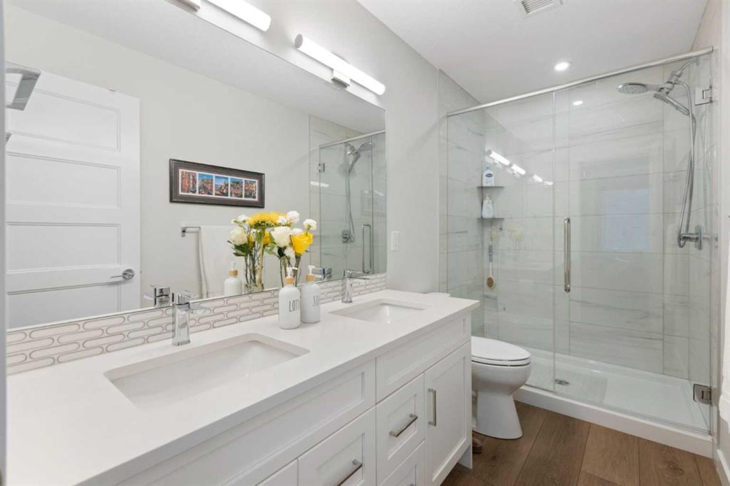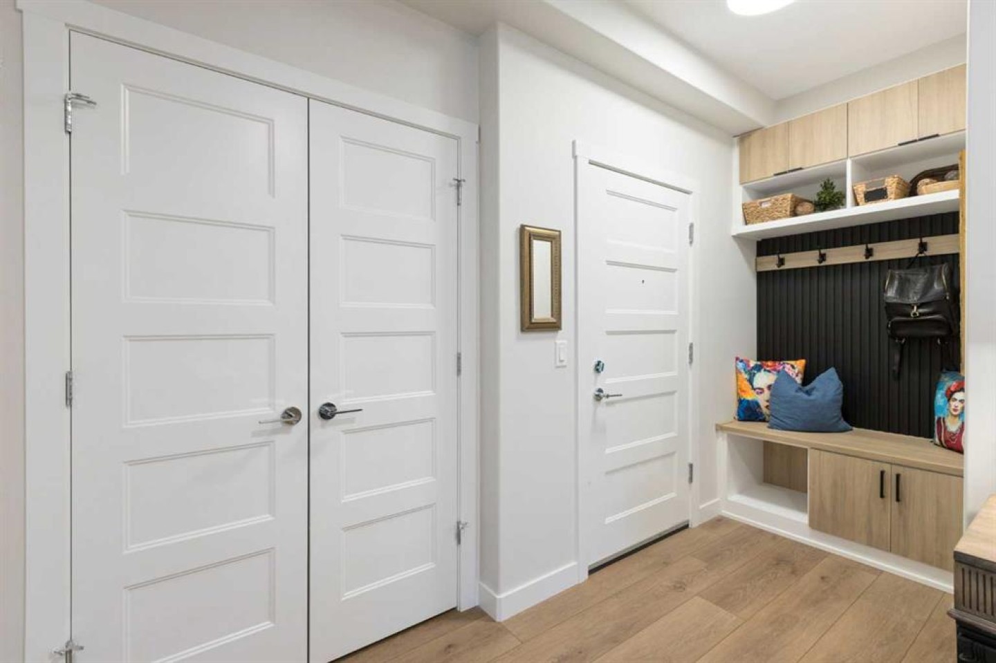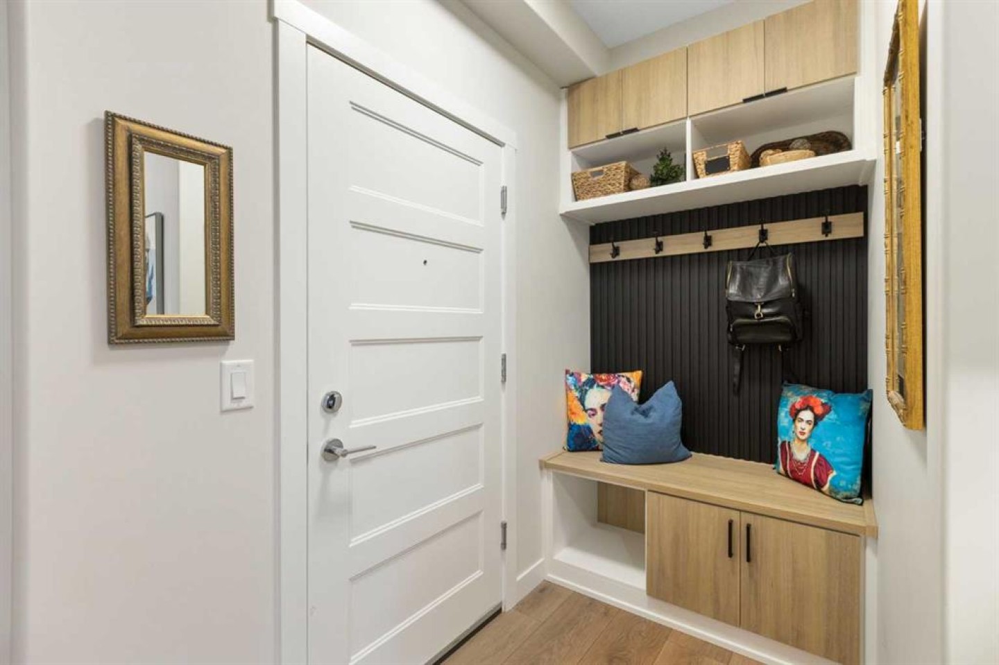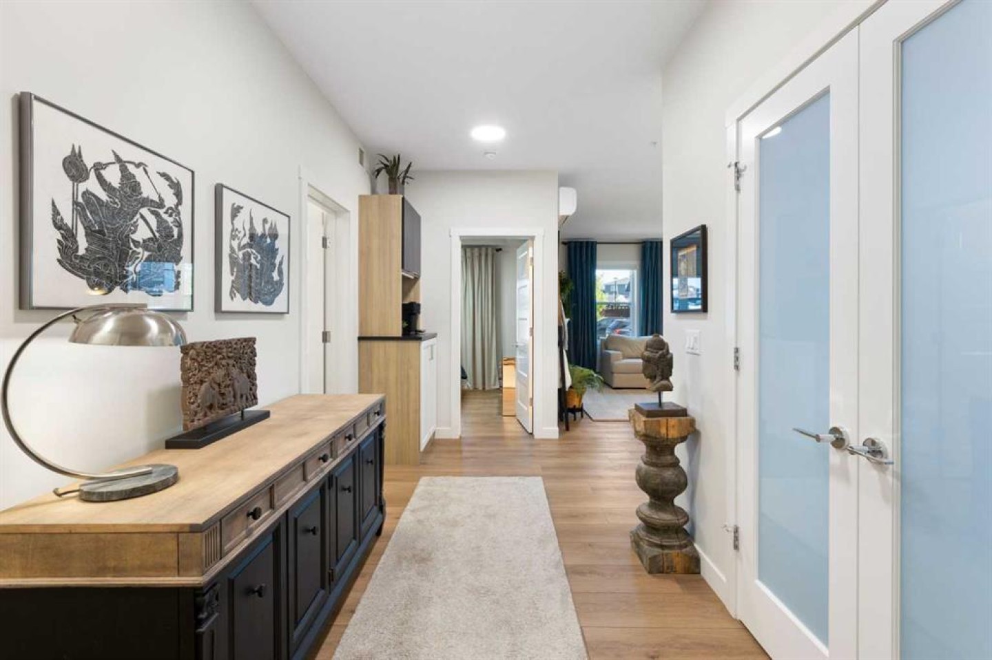 Welcome to this exceptional, fully upgraded 2-bedroom plus den corner unit in the heart of the highly sought-after Wolf Willow community. Offering 1,165 square feet of beautifully designed main-floor living space and over $70,000 in custom renovations, this home seamlessly blends luxury, comfort, and convenience. The expansive primary retreat easily fits a king-sized bed and features a spa-inspired 4-piece ensuite with double vanities, a 5-foot walk-in shower, and a custom California walk-in closet complete with built-in organizers and drawers. The generous second bedroom includes a custom step-in closet and sits next to a stunning 4-piece guest bath with a full-size tub and tile carried to the ceiling. A versatile den with double French doors creates the perfect home office, studio, or cozy reading space. Designed for both elevated entertaining and everyday living, the chef’s kitchen is anchored by a show-stopping 10-foot quartz island. You’ll also find ceiling-height cabinetry with pull-out drawers, upgraded stainless steel appliances, a built-in coffee bar, undermount lighting, and a garburator. The kitchen flows effortlessly into a dedicated dining area and a bright, inviting living room featuring a fireplace and expansive windows that flood the space with natural light. Refined finishes continue throughout with 9-foot ceilings, luxury vinyl plank flooring, air conditioning, custom wood paneling with built-in soundproofing, and 3M privacy window tinting. The full-size in-suite laundry room offers additional custom cabinetry for optimal storage and functionality. This unit includes a titled, oversized accessible underground parking stall and two full-size storage lockers—one underground and one conveniently located on the main floor. Residents enjoy secure bike storage, ample visitor parking, and direct access to a private walk-out patio with a gas hookup for a BBQ and fire table, which also serves as a secondary entrance. Ideally located just steps from Fish Creek Park, the Bow River, a 9-acre off-leash dog park, 80 kilometers of scenic bike paths, playgrounds, and Blue Devil Golf Course, this home offers the perfect balance of nature and urban convenience. Everyday amenities, coffee shops, and major routes including Stoney Trail and Macleod Trail are just minutes away. Set within a pet-friendly building with low condo fees and a welcoming community atmosphere, this move-in-ready condo is an outstanding opportunity for first-time buyers, downsizers, or investors alike. Experience the best of Wolf Willow living—schedule your private showing today.