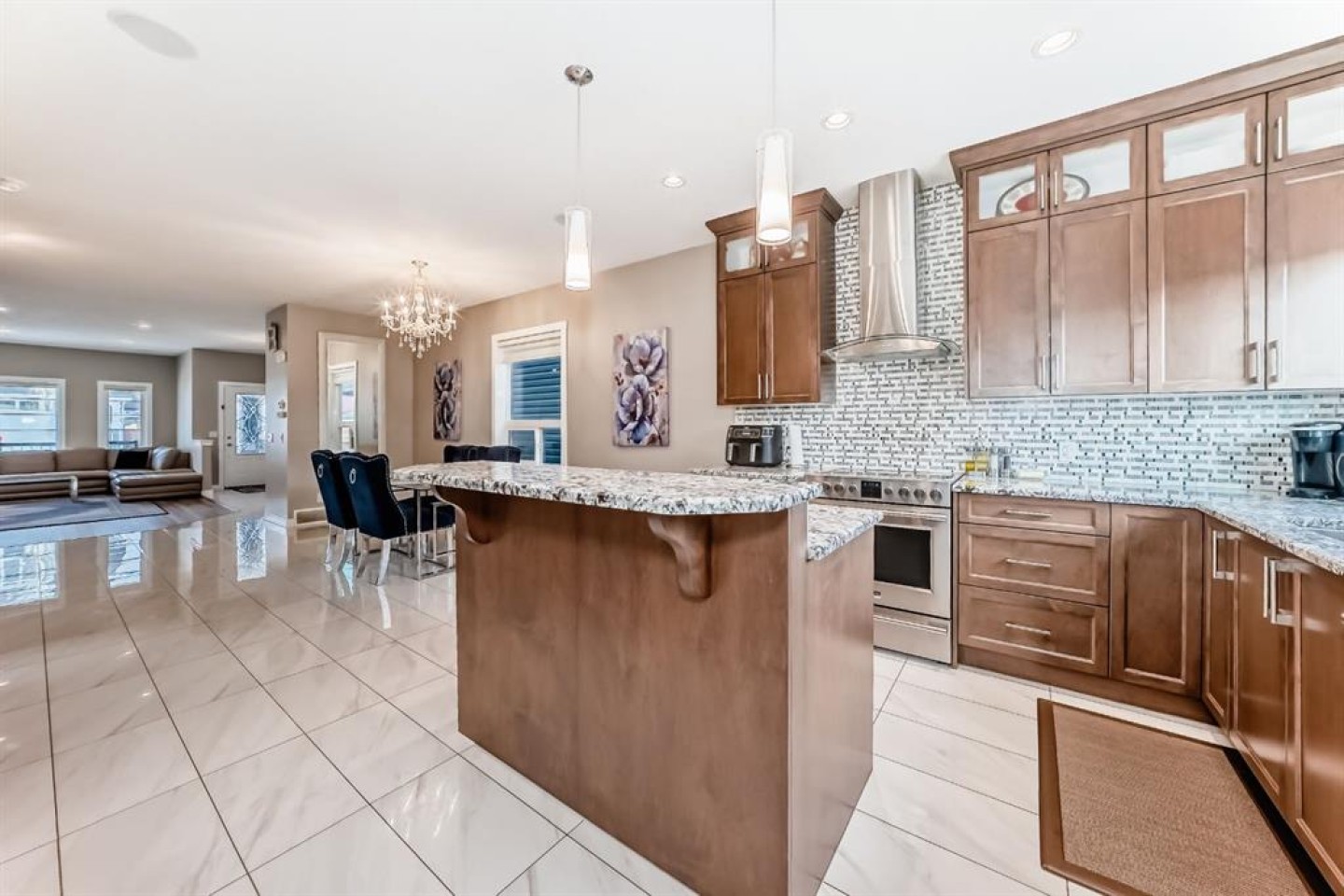 Welcome Home to one of the most unique properties in Redstone! 9- FEET CEILINGS (main floor & upper floor)! Over 2,900 square feet of developed space, 6 BEDROOMS, 3.5 BATHROOMS, illegal basement suite, DOUBLE DETACHED DRYWALLED-GARAGE, CENTRAL AIR CONDITIONING, it boasts an OPEN FLOOR plan showing it through its LARGE LIVING ROOM, LARGE DINING space, UPGRADED KITCHEN, UPGRADED BATHROOMS, SOUND SYSTEM on the main floor, NEW EXTERIOR and that is just the beginning! From the moment you arrive, you will notice the inviting front COVERED PORCH. Step inside to a BRIGHT, tons of NATURAL LIGHT coming from windows all around & POTLIGHTS. The well-positioned cosy GAS FIREPLACE will keep you warm in winter. The living room with its stylish LUXURY VINYL PLANK will lead you to the OPEN DINING ROOM with MORE WINDOWS leading to your KITCHEN with CEILING-HEIGHT CABINETRY, CHIMNEY-STYLE HOOD FAN, GRANITE COUNTERTOPS, all STAINLESS STEEL APPLIANCES! A BIG WALK-IN PANTRY, 2nd LINEN CLOSET, half BATHROOM, & REAR ENTRANCE CLOSET! The UPGRADED STAIRCASE will lead you to a ROOMY MASTER BEDROOM, with a SPACIOUS WALK-IN CLOSET, an ENSUITE BATHROOM featuring a corner SOAKER TUB & A WALK-IN SHOWER! & DOUBLE SINKS! There are 3 additional BEDROOMS and a 2nd FULL BATHROOM & your CONVENIENT LAUNDRY CLOSET! The BASEMENT SUITE (illegal) has its own SEPARATE ENTRANCE, ITS OWN LAUNDRY, 2 BEDROOMS, FULL BATHROOM, & also an OPEN FLOOR PLAN! The house sits steps away from two Shopping Plazas & minutes to all major roads! WELCOME to the HOUSE that has it ALL! WELCOME HOME!