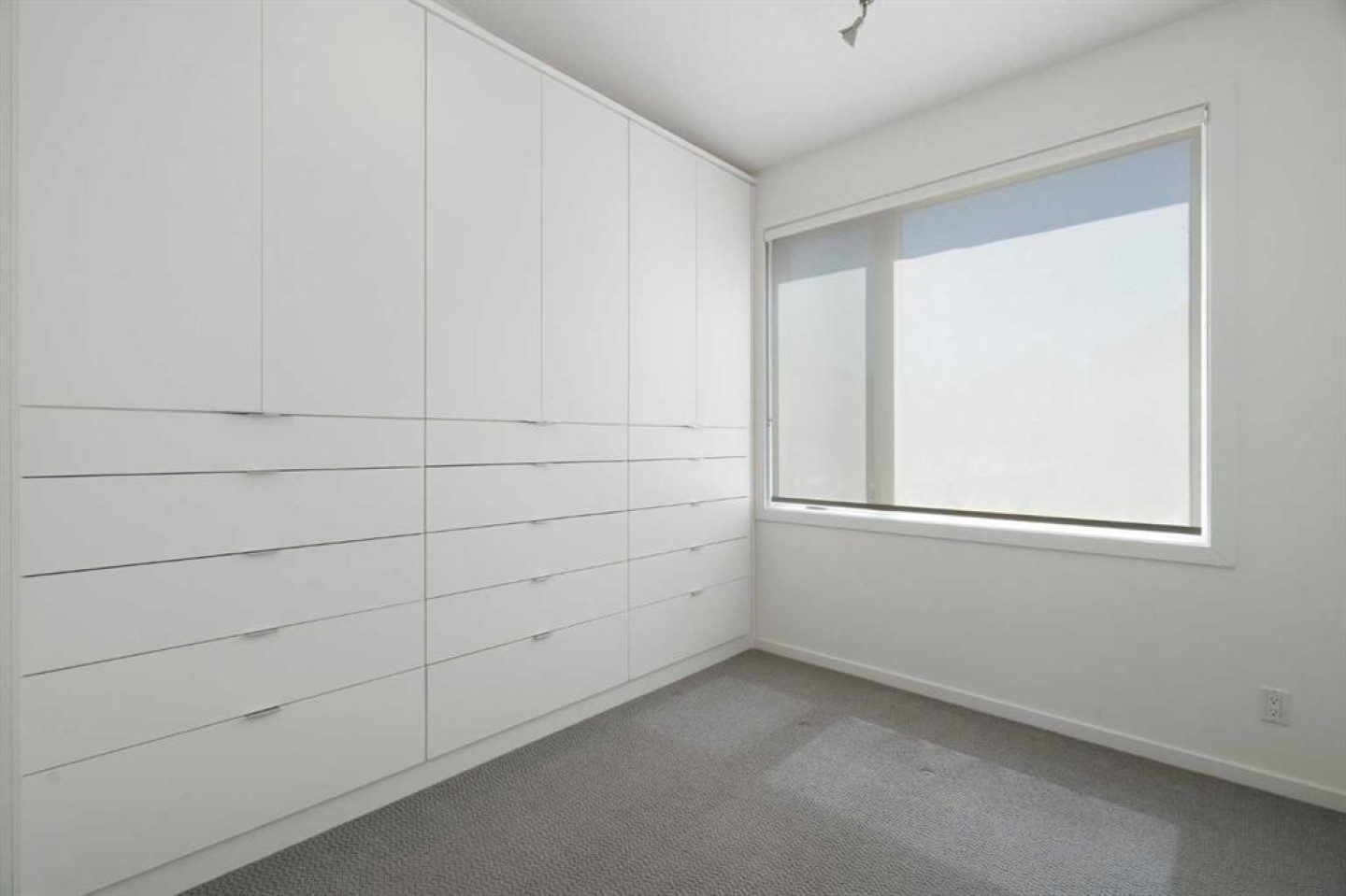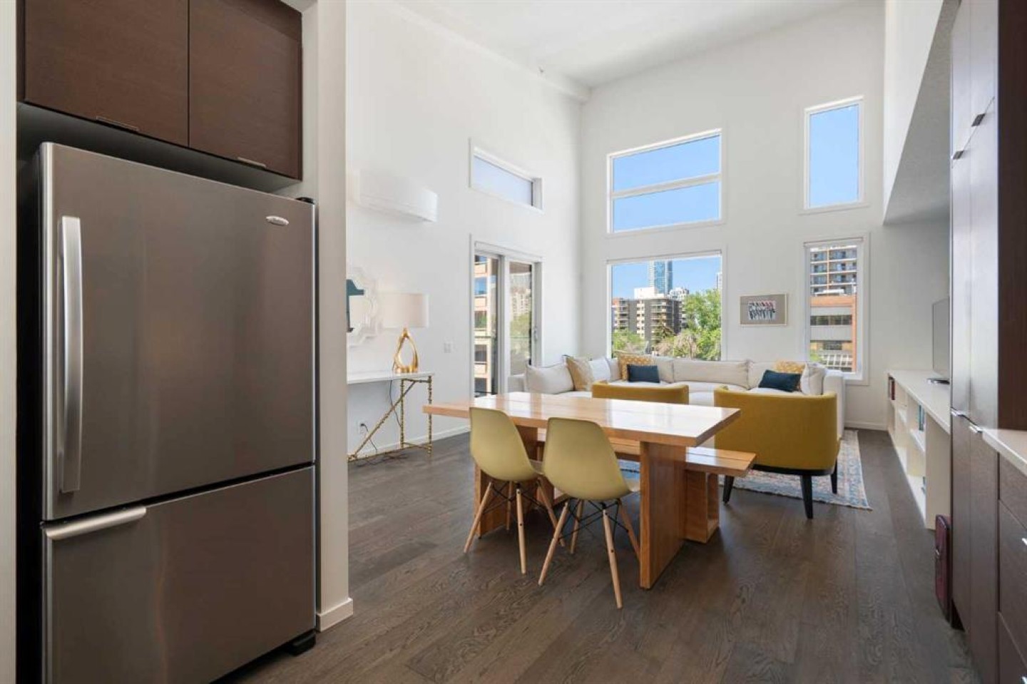 Welcome to The Block, one of Calgary’s most architecturally distinctive communities just off vibrant 17th Avenue. Designed by Sturgess Architecture and built by Avi Urban, this boutique development is known for its rare private courtyard concept — each residence opens directly to the outdoors, creating a sense of community, privacy, and independence that’s truly unmatched in the downtown core.This top-floor penthouse loft is one of the most desirable suites in the complex. Soaring 14’ vaulted ceilings and hardwood floors throughout create an airy, dramatic living space, while massive windows flood the home with natural light. A custom wall of built-ins anchors the living room with both style and functionality. The sleek kitchen features stainless steel appliances, lacquered cabinetry, and generous storage — perfect for both everyday living and entertaining. Step out onto your private deck with city views, complete with gas access for easy BBQ evenings. The spacious primary bedroom offers large windows and convenient access to a beautifully appointed bathroom with walk-in glass shower and modern vanity. The second bedroom is thoughtfully designed with a full wall of built-in storage, making it ideal for guests, a home office, or both. Complete with titled parking, additional storage, built-in laundry, and air conditioning, this is effortless urban living at its finest. Now offered at a significantly improved price, this penthouse represents outstanding value in one of Calgary’s most dynamic inner-city locations. Don’t miss your opportunity to experience The Block at its very best.