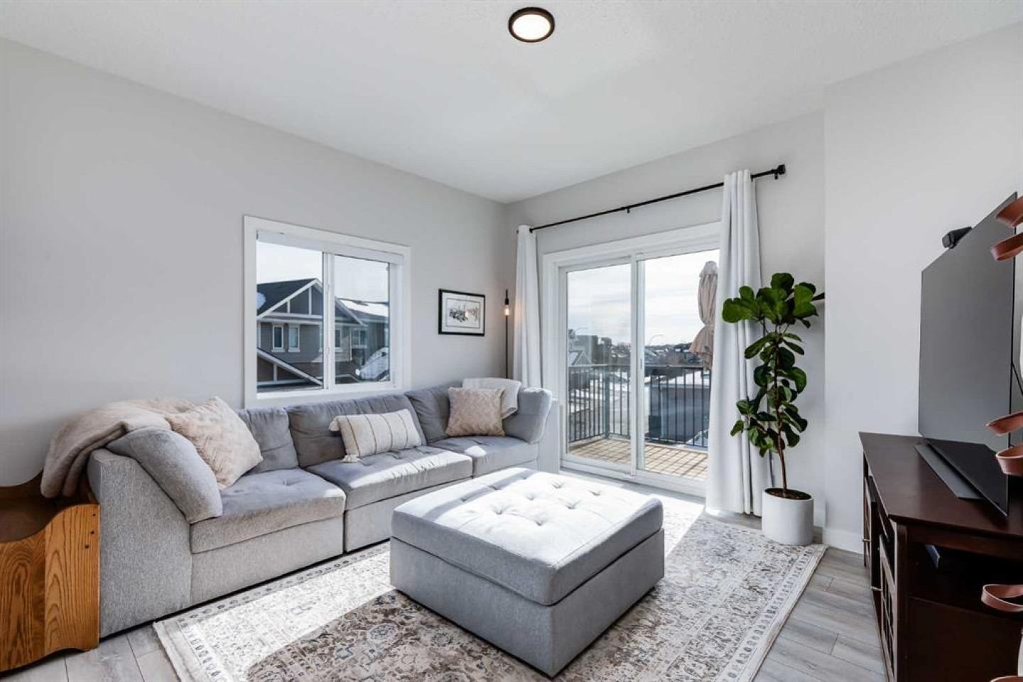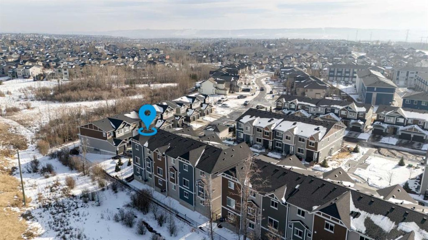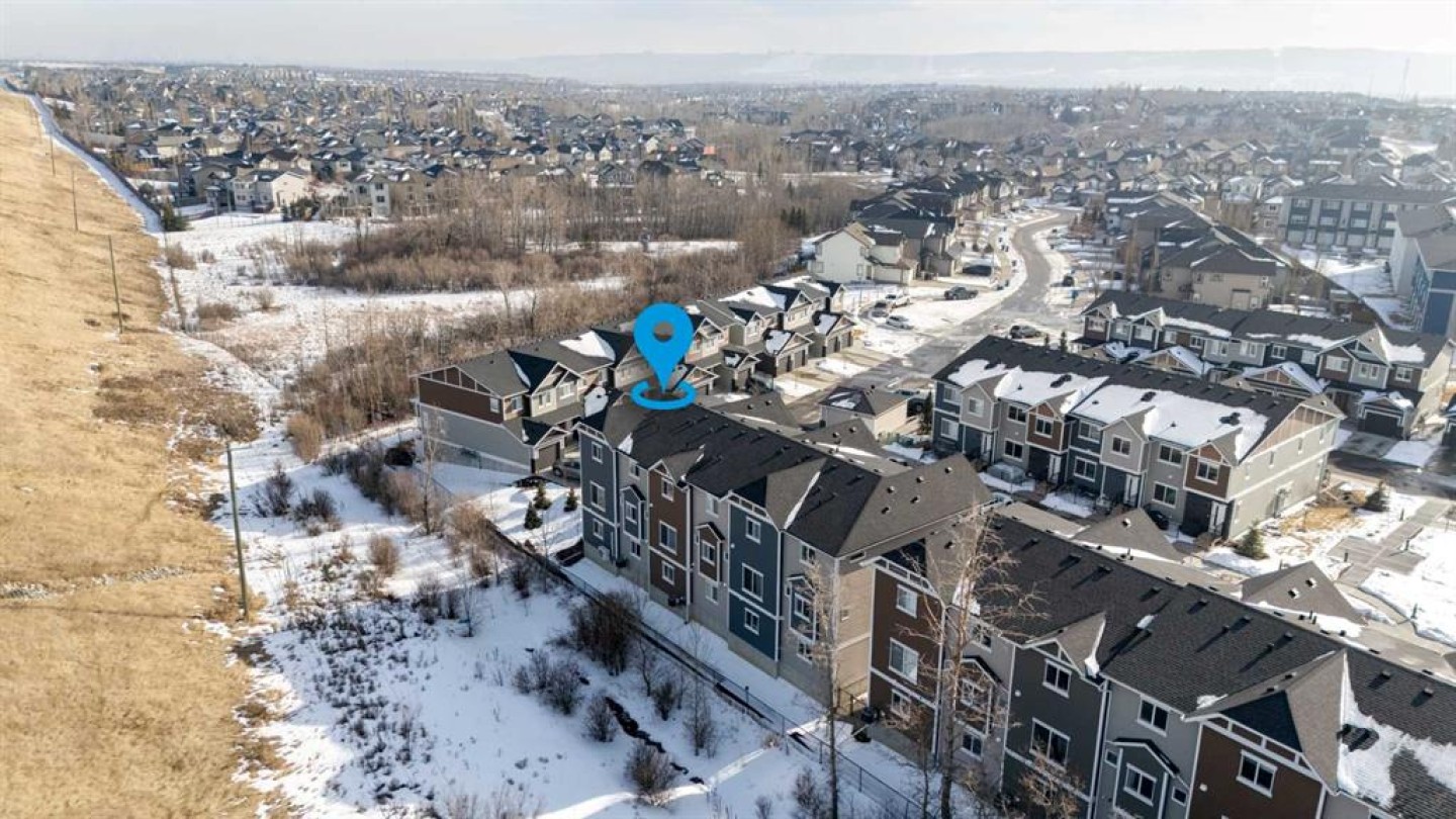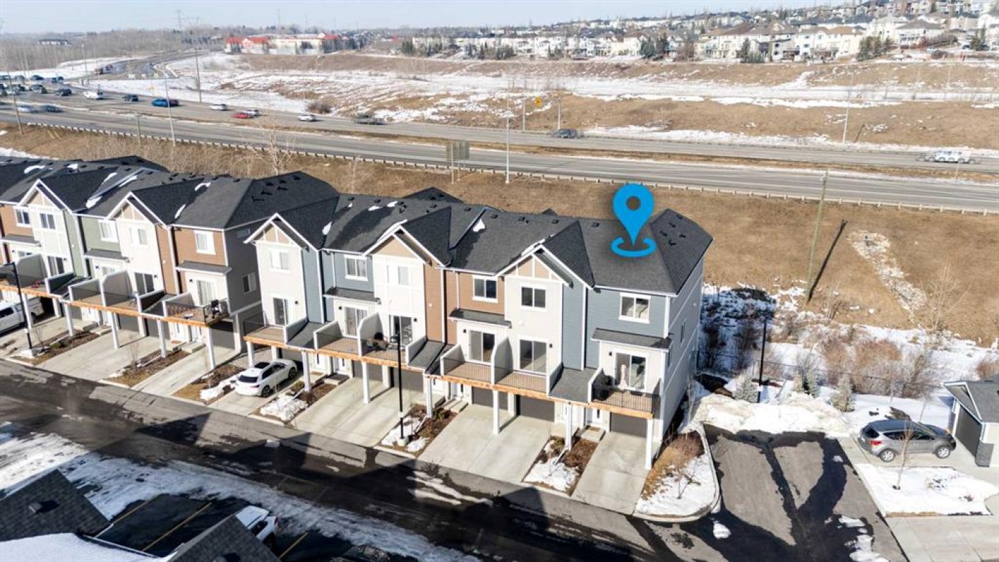 Located in the sought-after, family-friendly community of Tuscany, this end-unit three-storey townhouse offers 1,260 sq ft of thoughtfully designed living space with two bedrooms and two full bathrooms. Built in 2022 as part of the Tuscan Rise development by Rockford, the home combines contemporary finishes with a functional layout. The main level provides a welcoming entry and direct access to the attached tandem garage. This spacious garage comfortably accommodates two vehicles while still offering room for additional storage. Upstairs on the second level, the home opens into a bright, open-concept living area designed for both everyday living and entertaining. Large windows allow natural light to fill the space, highlighting the nine-foot ceilings and durable luxury vinyl plank flooring that runs throughout the level. The kitchen is a central feature, finished with white cabinetry, quartz countertops, under-cabinet lighting, and a tasteful backsplash. A two-tone island with seating creates a practical gathering spot, while stainless steel appliances, including a French door refrigerator, and generous cupboard and counter space provide everything needed for cooking and hosting. Adjacent to the kitchen, the dining area offers ample room for a full table, making it ideal for shared meals or casual gatherings. The living room provides a comfortable place to unwind, and sliding glass doors lead to the balcony, extending the living space outdoors. The balcony is equipped with a natural gas line, making it easy to connect a barbecue for outdoor cooking. Plush carpet adds comfort underfoot throughout the upper level. The primary bedroom is generously sized and features dual closets along with a private three-piece ensuite complete with an oversized shower. A second bedroom provides flexibility for guests, a home office, or additional family members. A four-piece bathroom serves this room and visitors, and the conveniently located laundry area completes the upper floor. The home includes air conditioning for summer comfort. Tuscany Summit Playground is just steps away, providing an easy place for outdoor play. Commuting is simple with quick connections to both Crowchild Trail and Stoney Trail. Nearby shopping, dining, and services can be found at Tuscany Market and Crowfoot Crossing, along with the YMCA. Several schools serve the community, including Eric Harvie School, St. Basil School, Twelve Mile Coulee School, and Tuscany School. Outdoor enthusiasts will appreciate being just minutes from Lynx Ridge and Valley Ridge Golf Clubs, the Bow River pathways, and WinSport. The location also offers convenient westward access toward the Rocky Mountains. Take advantage of your opportunity to see this incredible property in person, book your showing today! Be sure to check out the floor plans and 3D tour for a closer look before your visit.