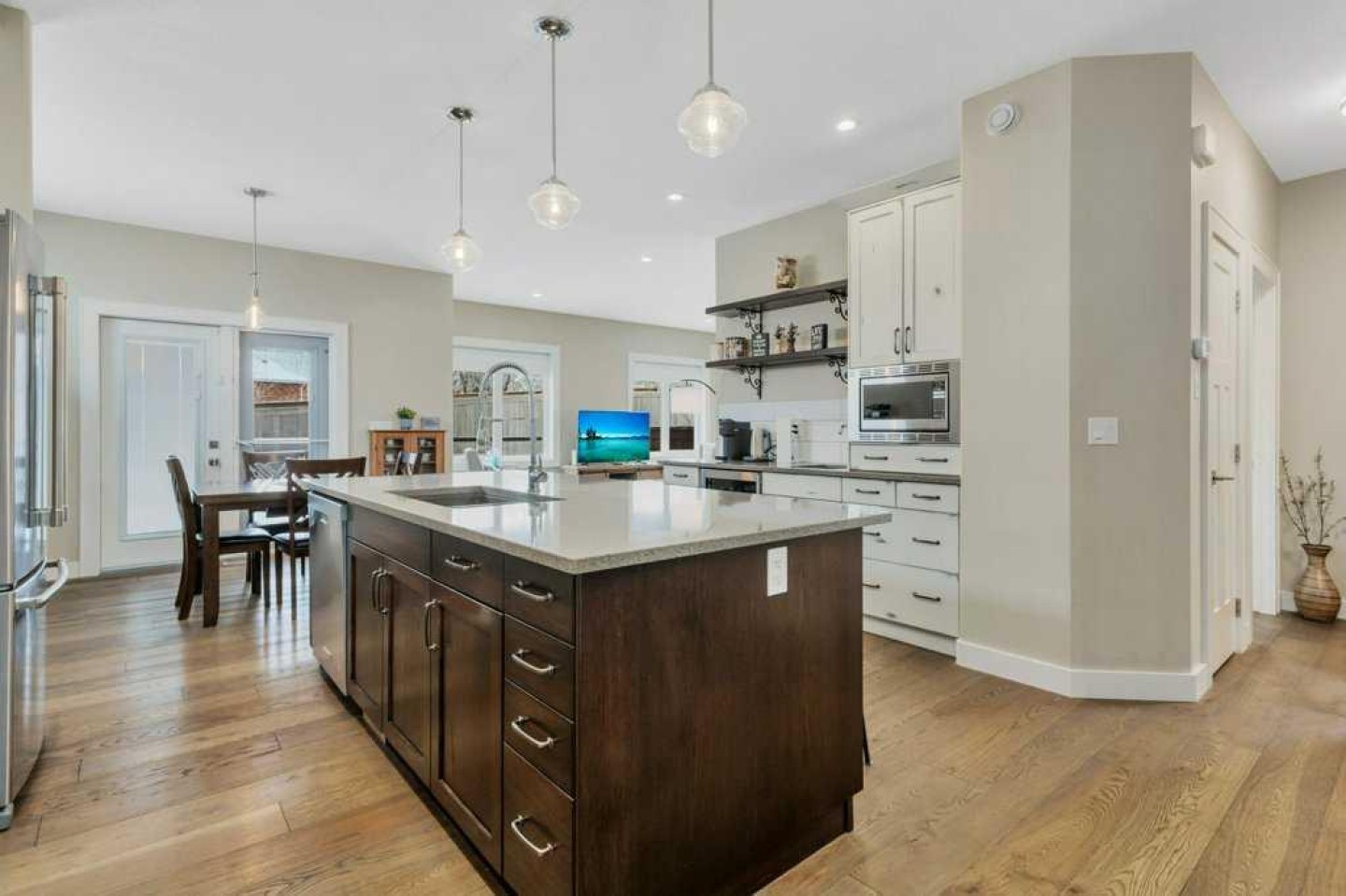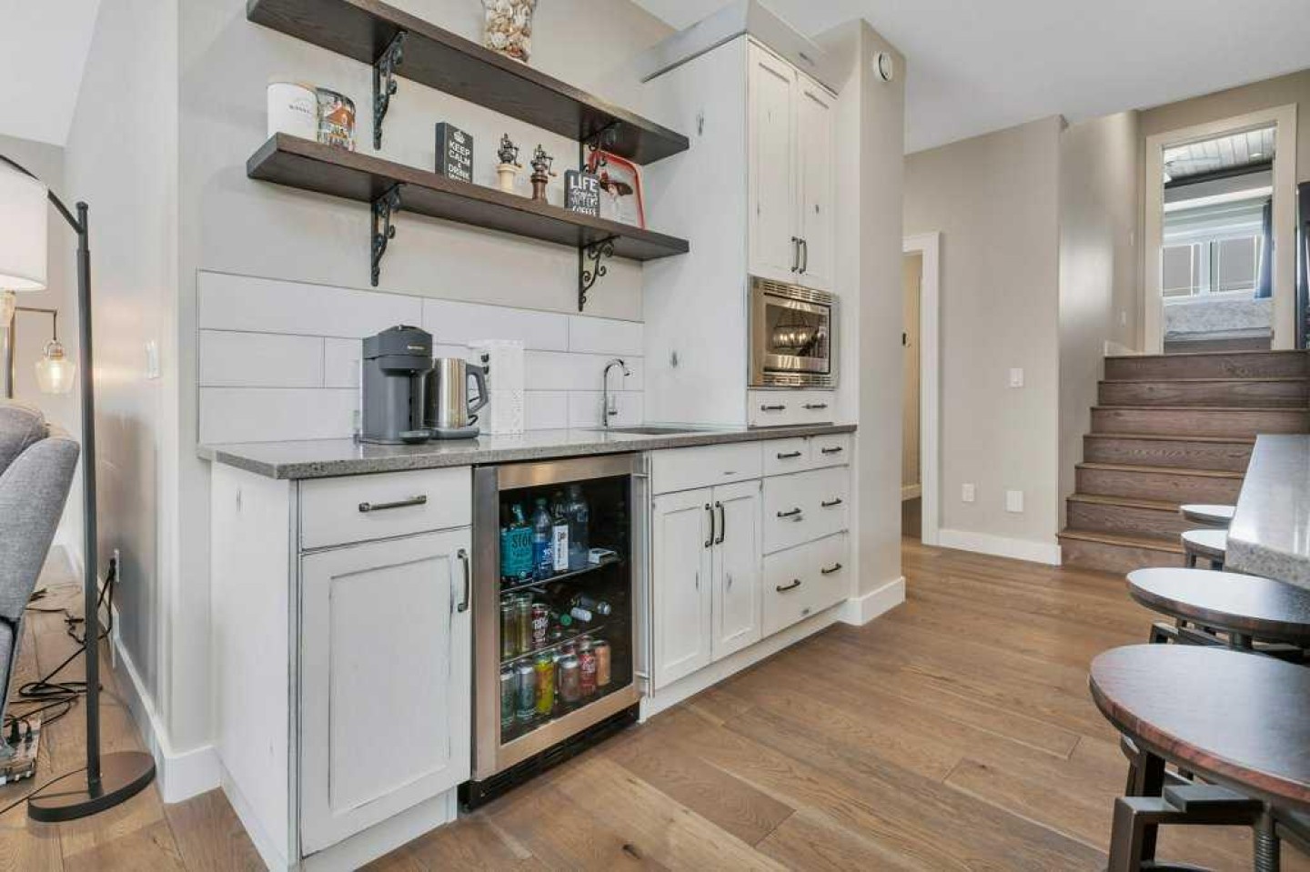 ** O.H. SUN 1-3 ** Located on a very quiet cul-de-sac in Hazelwood Estates of Innisfail, as soon as you enter the very spacious foyer of this 5 BEDROOM home, you are greeted with vaulted ceilings & a distressed, mosaic style tiled floor. A few steps up to the main floor of this custom built Bi-level & you will immediately notice the eye-catching country feel & farm-house charm. Modern stainless-steel appliances & quartz counter tops blend seamlessly with the antique finish of the kitchen cabinets & turquoise colored pantry door. Opposite the gas stove is a great space for a morning coffee prep station and/or a wet bar, complete with mini-fridge, storage & a second sink. You will be thankful for the extra storage on both sides of the massive center island! The kitchen is sure to be the family gathering place, seating 4 comfortably at the rich, espresso colored island, plus a large formal dining area, which can easily accommodate an expansive table for family dinners & larger special occasions. A cozy gas fireplace sits at the end of the adjacent living room, which looks out to the deck & SOUTH FACING back yard. The partially covered deck is perfect for morning coffee, evening drinks, catching the afternoon sun & Bar-B-Queuing out of the rain! (BBQ gas line built in). TWO good sized bedrooms & a tastefully designed 4-piece bathroom complete the rest of the spacious main level. Upstairs to the secluded primary suite, you will immediately notice the wood-inset raised ceiling, giving this already very spacious bedroom an even more grand feeling! Just behind the TWO double closets is a spa inspired en-suite bathroom, with a walk-in shower & soaker style tub. This is truly a well-designed private retreat with enough room for large bedroom sets. Heading down to the basement, the rustic floors continue the cozy country feel throughout each level. Downstairs is a very generous sized rec room / family room, the laundry room, utility room & TWO more exceptionally large bedrooms. One of which has a 4-piece en-suite, perfect for family or out of town guests. The back yard is a beautifully landscaped sanctuary with fruit trees & a 2-tiered garden designed with natural stone & perennial flowers. On warm summer days, you can watch birds playing by the water feature from the raised patio! The yard is fully secured with an attractive no-maintenance privacy fence to keep your pets at home and pests out. An oversized driveway leads to the attached HEATED TRIPLE GARAGE, which fits a truck, an SUV & still has room for a workshop, recreational equipment, seasonal decorations & just about everything else! Recent upgrades in 2025 to this well cared for home were a NEW fridge & NEW hot water tank. CENTRAL AIR CONDITIONING was installed just last year for those warm summer days & nights! Over 2600 square feet have been developed & meticulously cared for! You will agree that this home shows 10/10 and so will your future guests! Come see it before someone else falls in love with it first!