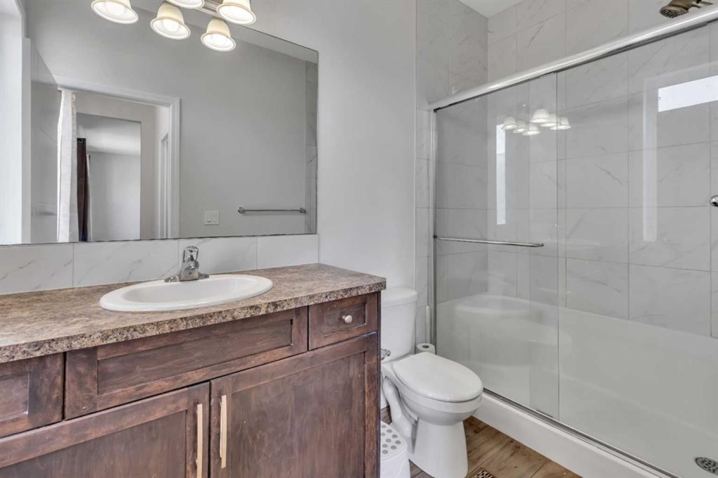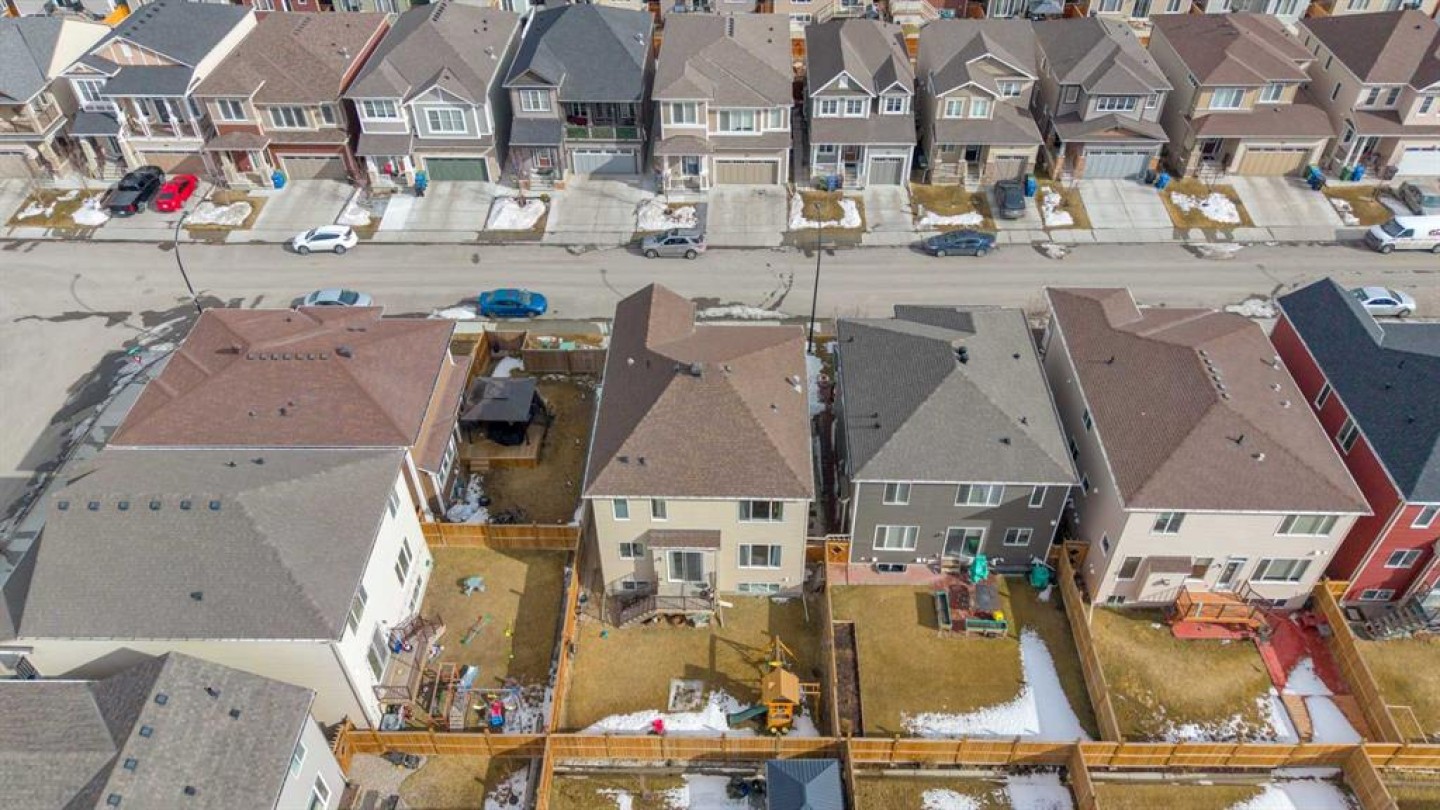 Luxury Living in Cityscape – Stunning Front Garage Home Welcome to this beautifully maintained front garage home in the highly sought-after community of Cityscape in NE Calgary. Situated on an extra-wide conventional lot, this impressive property offers 4 bedrooms, 3.5 bathrooms, and a spacious bonus room, with over 2,247 sq. ft. of thoughtfully designed living space. [DO CHECK 3D TOUR] Built in 2018, the home features 9-foot ceilings throughout, creating an open and airy atmosphere. Recent updates include new roof and siding (2025), along with modern upgrades such as central air conditioning, smart home features, upgraded lighting, ceiling fans, and a large front balcony. The chef-inspired kitchen boasts maple cabinetry, granite countertops, stainless steel appliances, a gas range with chimney hood fan, oversized refrigerator, a large kitchen island, modern backsplash, and an oversized walk-in pantry. The spacious main floor is ideal for entertaining, highlighted by a large living room designed for gatherings and everyday comfort. Upstairs, you’ll find three generously sized bedrooms, including a luxurious primary suite featuring his-and-hers closets and a spa-inspired 5-piece ensuite with dual sinks, a soaker tub, and a separate shower. The upper level also includes a huge bonus room with a cozy fireplace, a stylish 4-piece bathroom, and the convenience of top-floor laundry. The fully developed basement offers excellent flexibility, complete with a large bedroom with walk-in closet, a 3-piece bathroom, a spacious recreation room, and additional storage, making it perfect for guests, extended family, or entertainment space. Step outside to enjoy the large backyard with a deck, ideal for relaxing or hosting gatherings. Both the front and back yards are professionally landscaped and fully fenced, providing privacy and curb appeal. Perfectly located within walking distance to Cityscape Plaza, playgrounds, and transit, this home also offers quick access to major routes including Stoney Trail and Deerfoot Trail, along with nearby parks, shopping, and scenic walking paths. Move-in ready and beautifully upgraded, this exceptional property is a must-see. Book your private showing today!