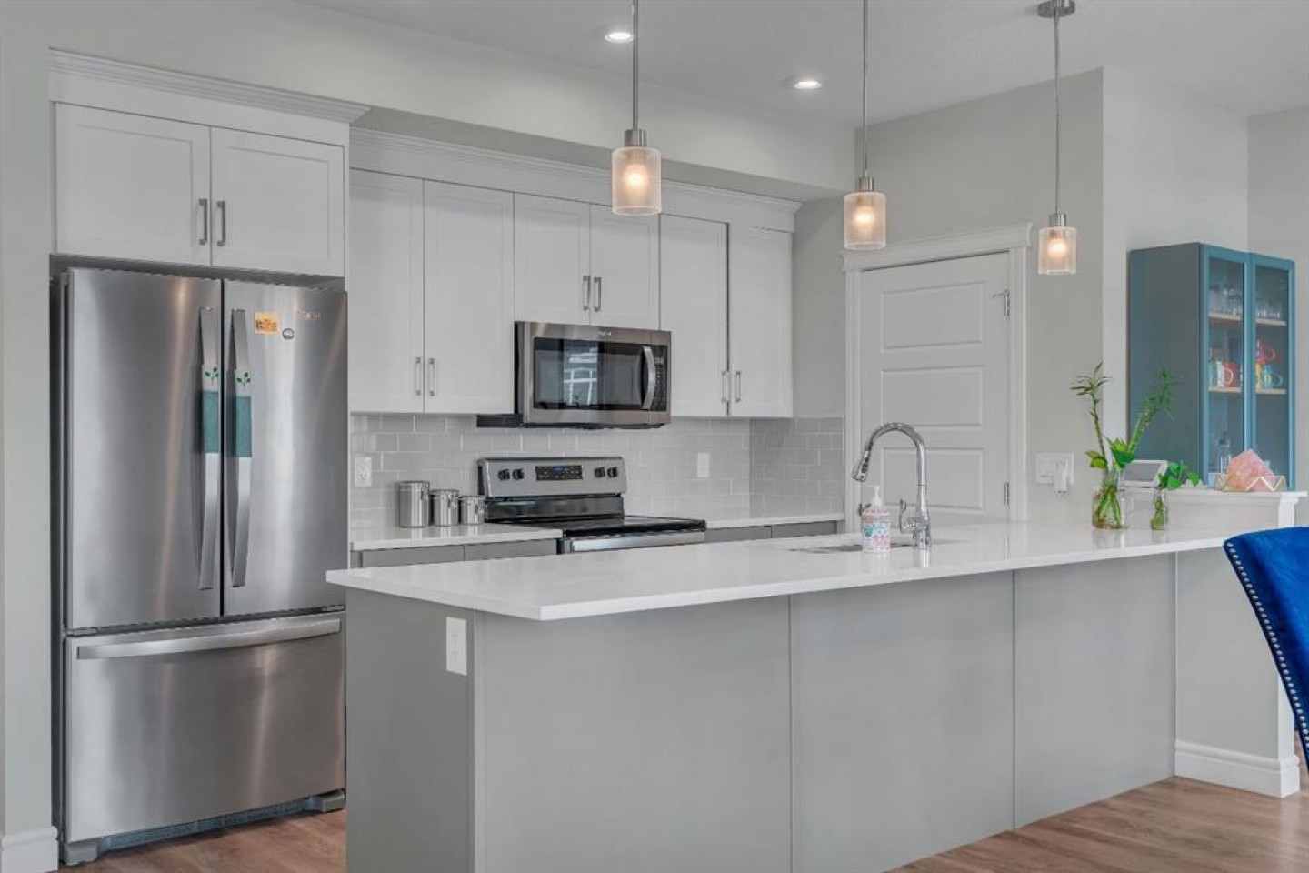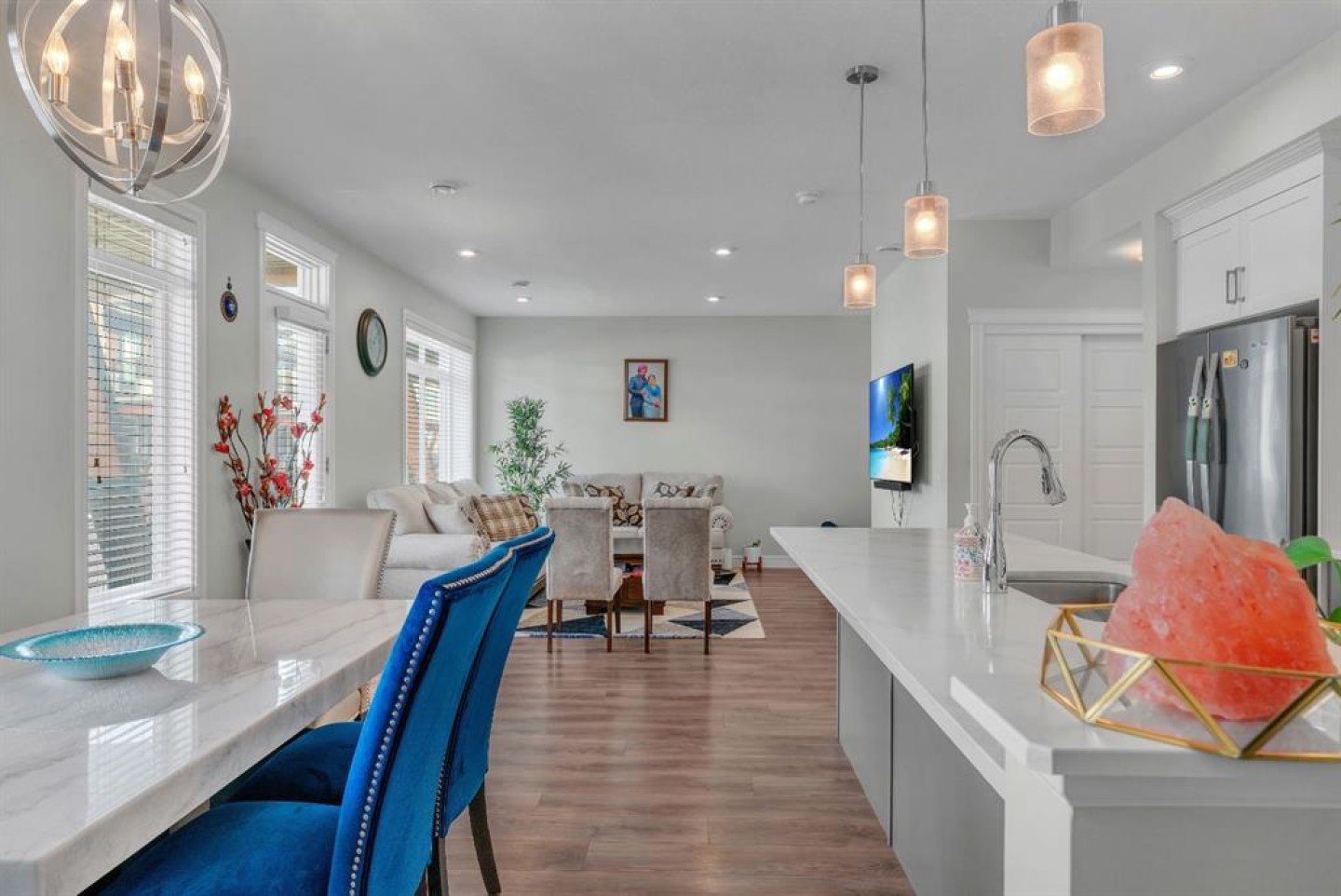 STOP THE SCROLL - One of the Best Townhomes in Savanna at an UNBEATABLE LOCATION! Featuring an ATTACHED GARAGE & PRIVATE DRIVEWAY, offering Nearly 1,500 SQFT of Bright, Modern Living - Watch the Video. 3 BEDROOMS | 2.5 BATHROOMS | 9 FT CEILINGS | OPEN CONCEPT | QUARTZ COUNTERTOPS | STAINLESS STEEL APPLIANCES | EXTENDED KITCHEN ISLAND | 2 BALCONIES | BONUS FLEX SPACE | WALK TO UPCOMING SCHOOL | MINUTES TO SAVANNA BAZAAR & GURUDWARA SAHIB | BEAUTIFUL COURTYARD AT THE FRONTStep inside this upgraded and modern townhome, where you are welcomed by a bright open-concept main floor featuring 9 FT ceilings and large windows, allowing natural light to pour in throughout the day. The spacious living room creates the perfect setting to relax with family or entertain guests. The stunning chef-inspired kitchen is truly the heart of the home, featuring elegant cabinetry with soft-close doors, quartz countertops, stainless steel appliances, a corner pantry, and an extended central island with beautiful pendant lighting-perfect for both meal preparation and entertaining. The main level also includes a dedicated dining area, convenient half bathroom, and a laundry area, making everyday living both practical and comfortable. Step outside onto your private balcony, ideal for BBQs and outdoor relaxation. Upstairs you’ll find three spacious bedrooms, including the primary retreat with a walk-in closet and a 4-piece ensuite bathroom. Two additional bedrooms - one featuring its own private balcony - both include built-in closets and are perfectly positioned next to the main bathroom, offering comfortable space for family members or guests. The upper-level bonus/flex space is perfect for a home office, study area, or reading nook, adding valuable versatility for today’s lifestyle. Location truly sets this home apart. Situated within walking distance to the upcoming school and Savanna Bazaar, you’ll enjoy easy access to grocery stores, coffee shops, Chai Bar, restaurants, playgrounds, and everyday amenities. Commuting is convenient with a short drive to Saddletowne, Martindale, and McKnight LRT stations, as well as the Genesis Centre YMCA. Perfect for buyers searching for a Savanna townhouse with garage and driveway, a modern NE Calgary townhouse near Savanna Bazaar, or a bright open-concept home in Savanna Calgary close to schools and amenities. Townhomes in Savanna with both a private driveway and attached garage rarely come available - don’t miss this opportunity. Book your private showing today!