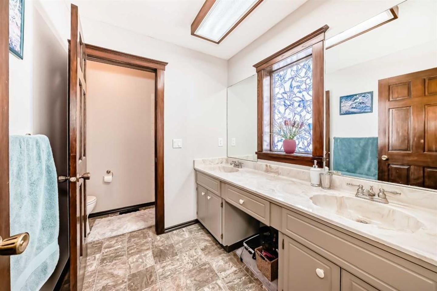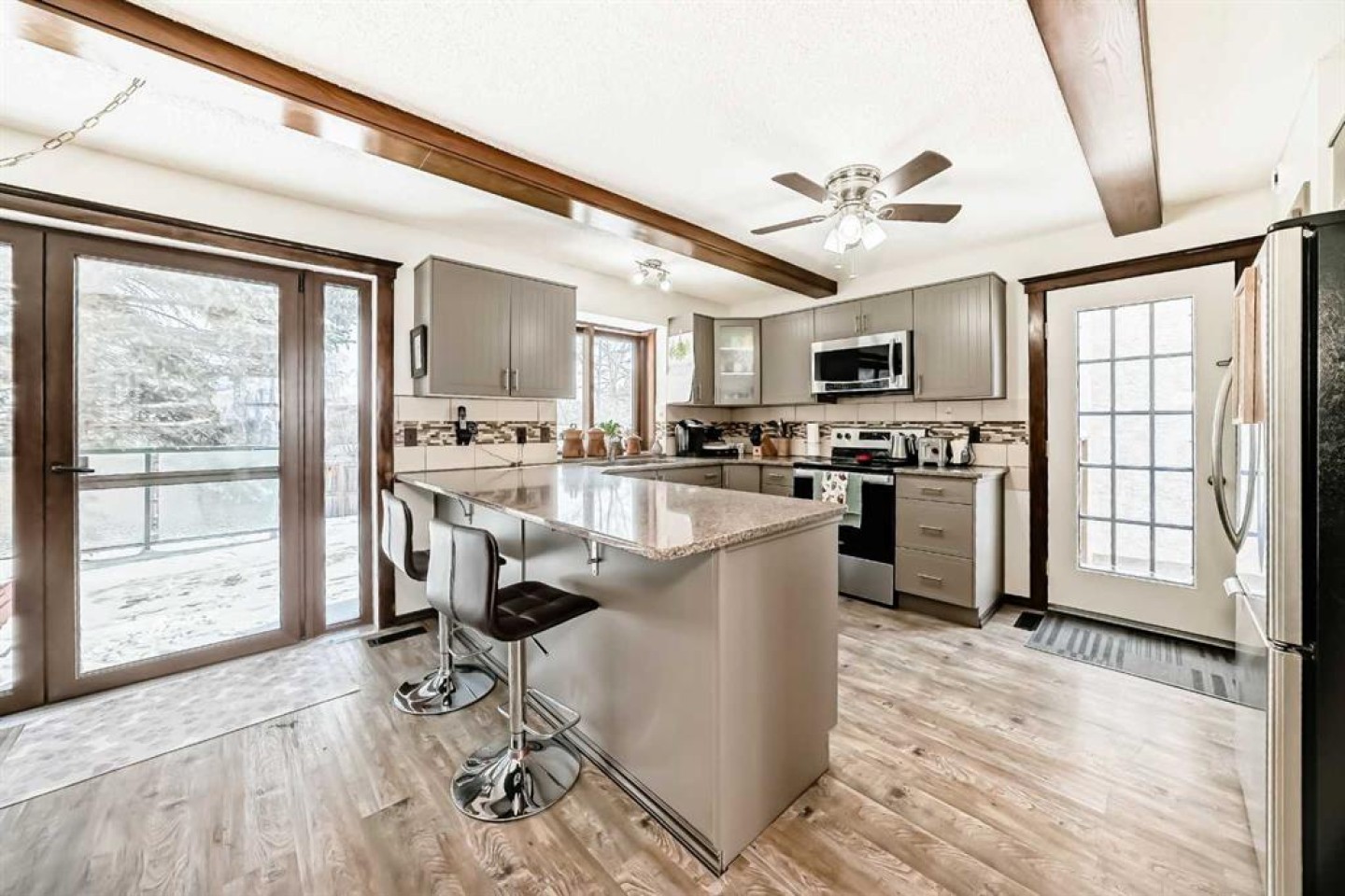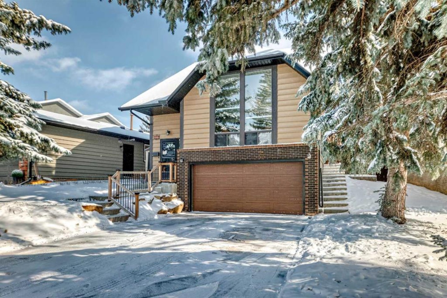 Move-in ready and well cared for, this Coach Hill home is also a great opportunity for someone looking to add their own cosmetic updates over time. Located close to the core while still tucked away from the noise, the home was built in 1980 and features distinctive design elements that still work well for modern living. The vaulted ceiling in the living room is the standout feature, paired with tall west-facing windows that bring in plenty of natural light. Mature trees provide privacy and help shade the home during hot summer afternoons. Some main level windows and patio door were upgraded in 2023, and the exterior was repainted in 2022. The main floor offers well-defined living spaces while still maintaining an open feel. The dining area flows naturally into the vaulted living room, creating a great space for gathering. At the back of the home, the kitchen and family room have a cozy feel with a fireplace, wet bar, and easy access to the large back deck with built-in hot tub. The kitchen has been thoughtfully updated over the years and includes a newer stove (2021) and dishwasher (2022). A natural gas line makes BBQ season easy. The upper level includes three bedrooms, and the spacious stair landing offers enough room for a small office or reading nook. The backyard also offers space for additional vehicle parking or RV storage. Mechanical updates include central air conditioning (2020), garage door and opener (2019), a new hot water tank (2025), and a high-efficiency furnace with humidifier installed in 2025 with ducts cleaned the same year. Additional features include a garburator and a fireplace log lighter. A great opportunity for buyers looking for a home with character, solid upgrades, and an opportunity to make cosmetic upgrades over time.